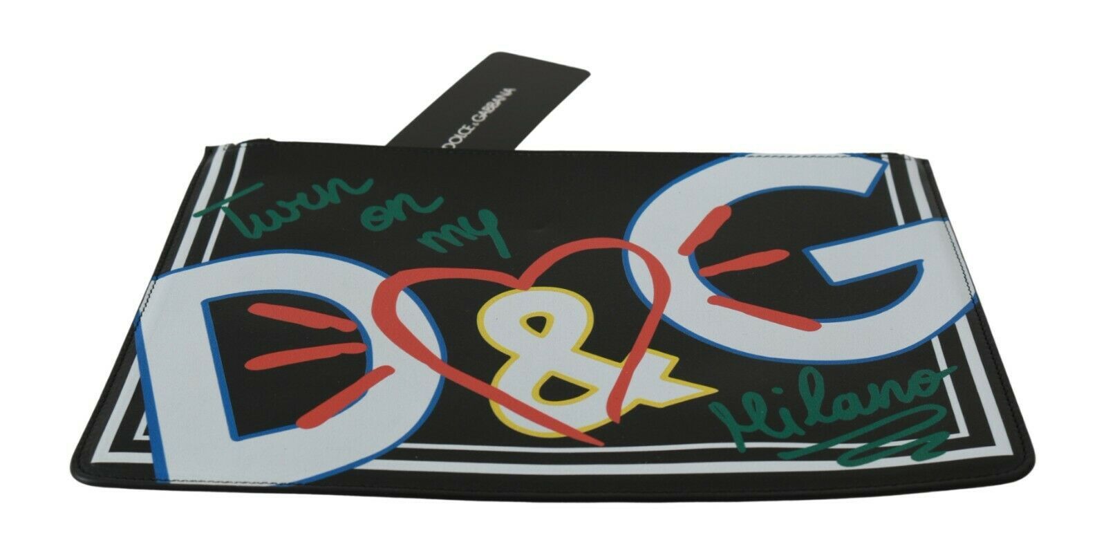 Dolce & Gabbana Black DG Print Мъжки кожен портфейл с цип за монети