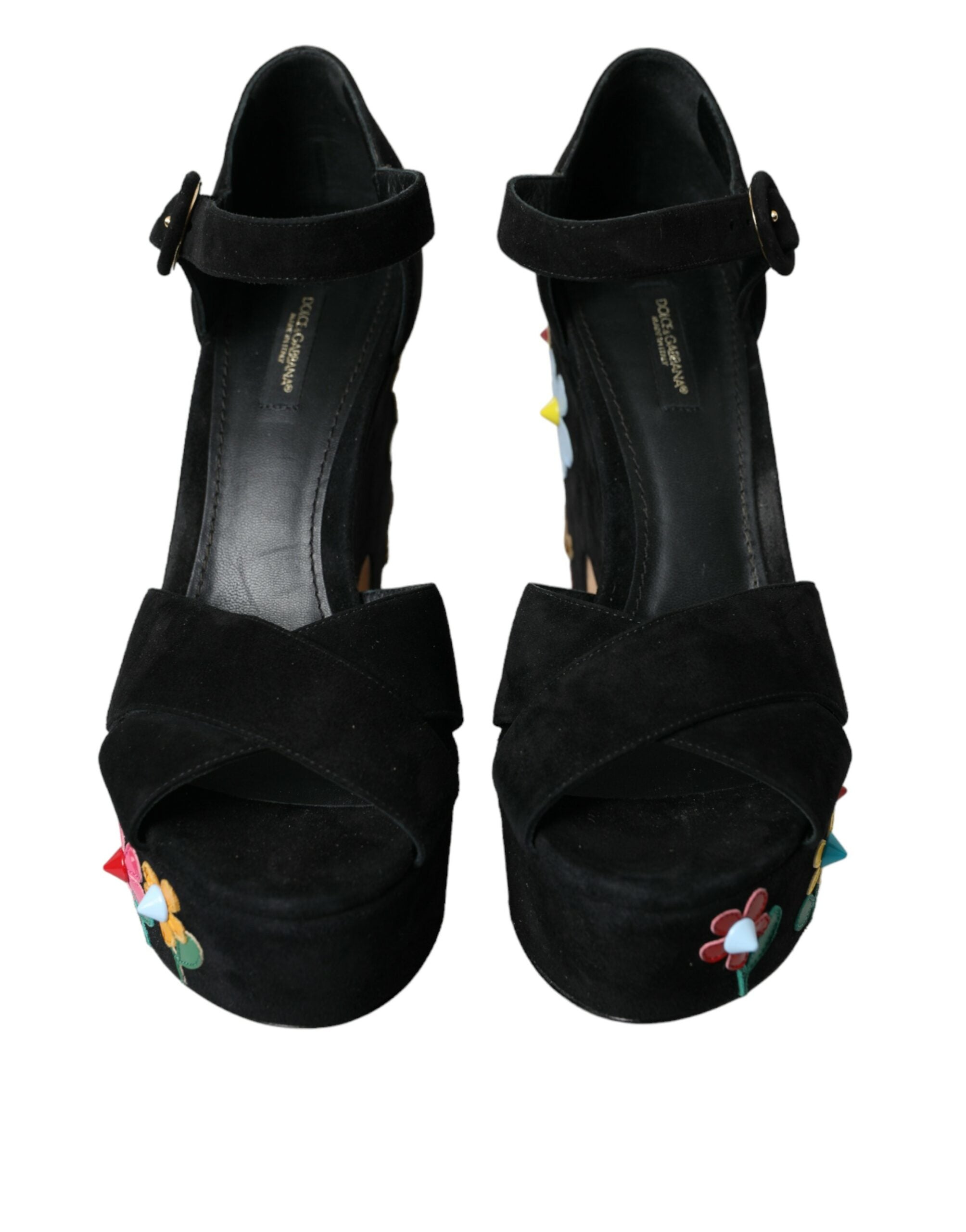 Dolce & Gabbana Black Suede Ankle Strap Heels Sandals Shoes