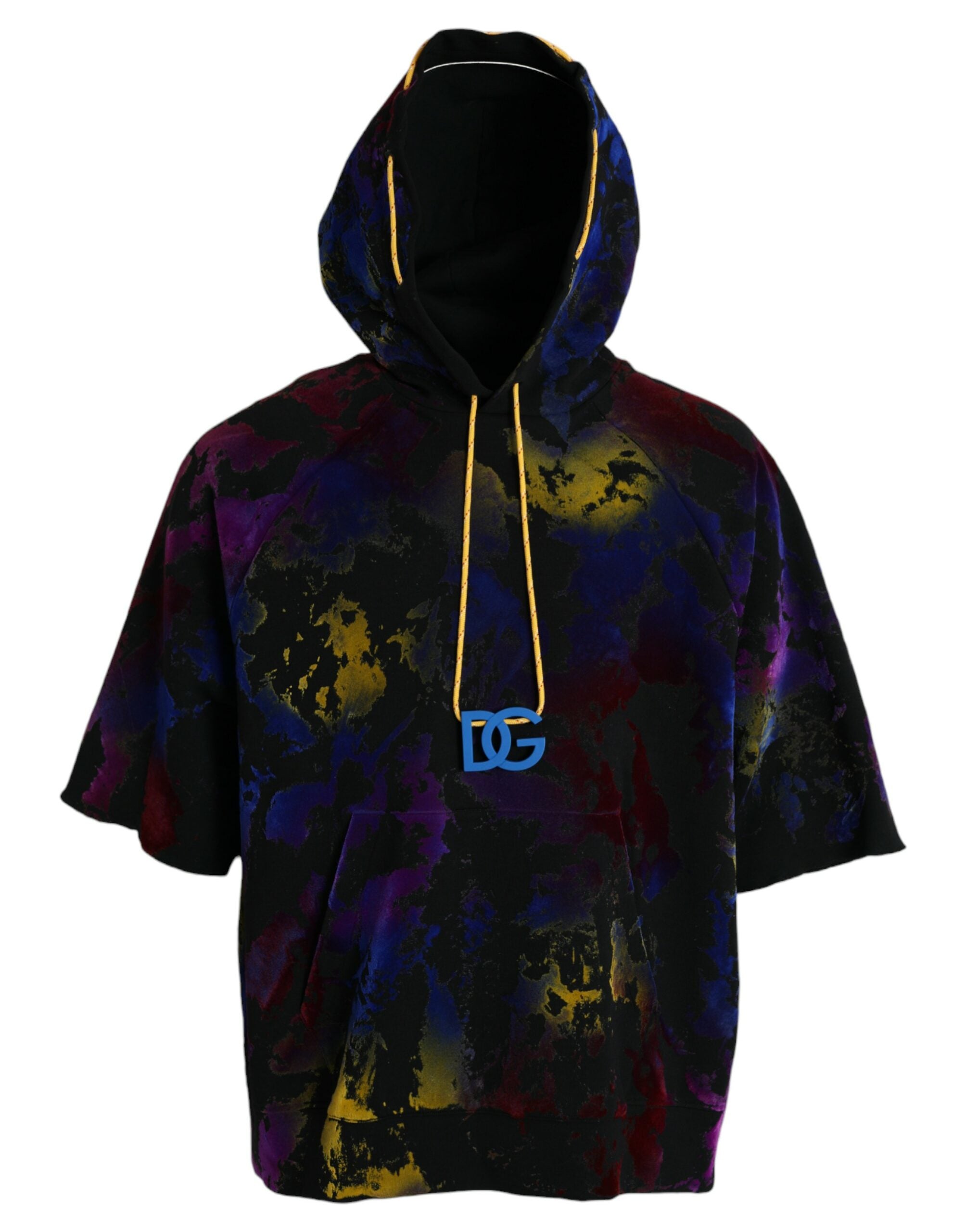 Dolce & Gabbana Black Tie Dye Logo Cotton Hooded Sweatshirt Sweater