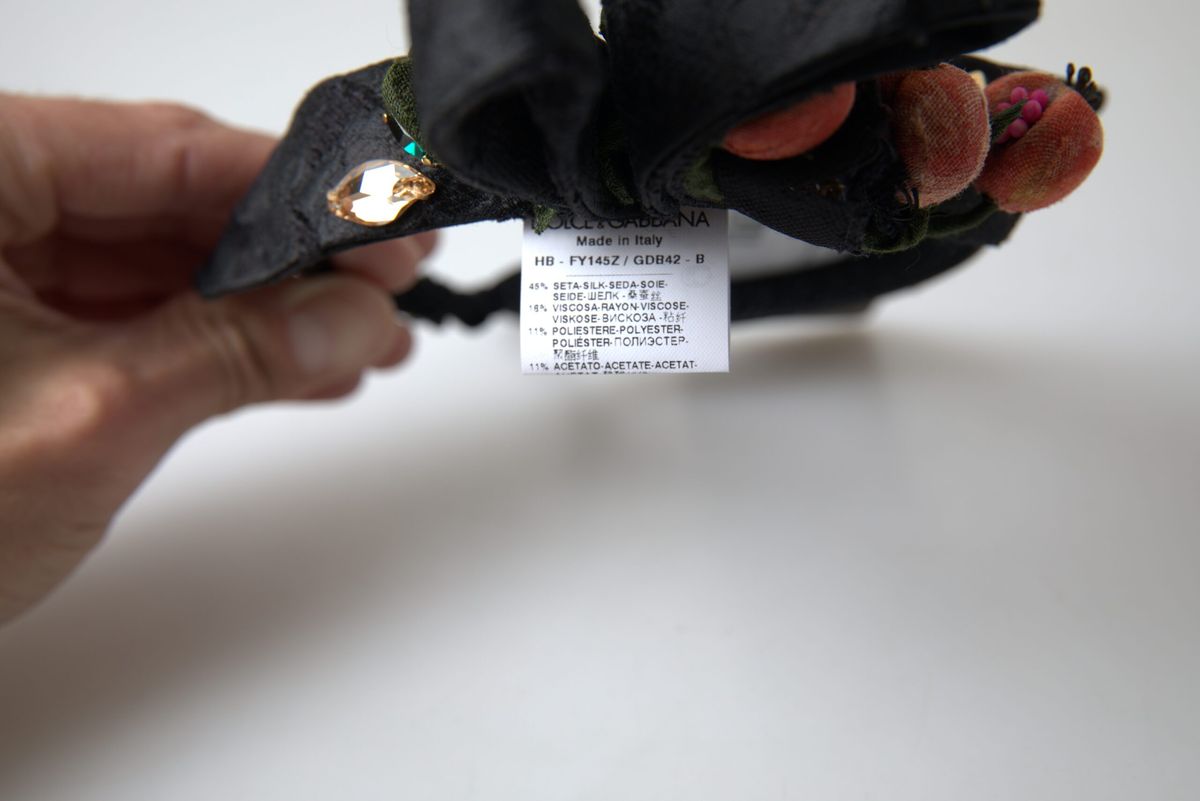 Dolce & Gabbana Черно с многоцветна диадема с диадема с диадема от плодове и смокини
