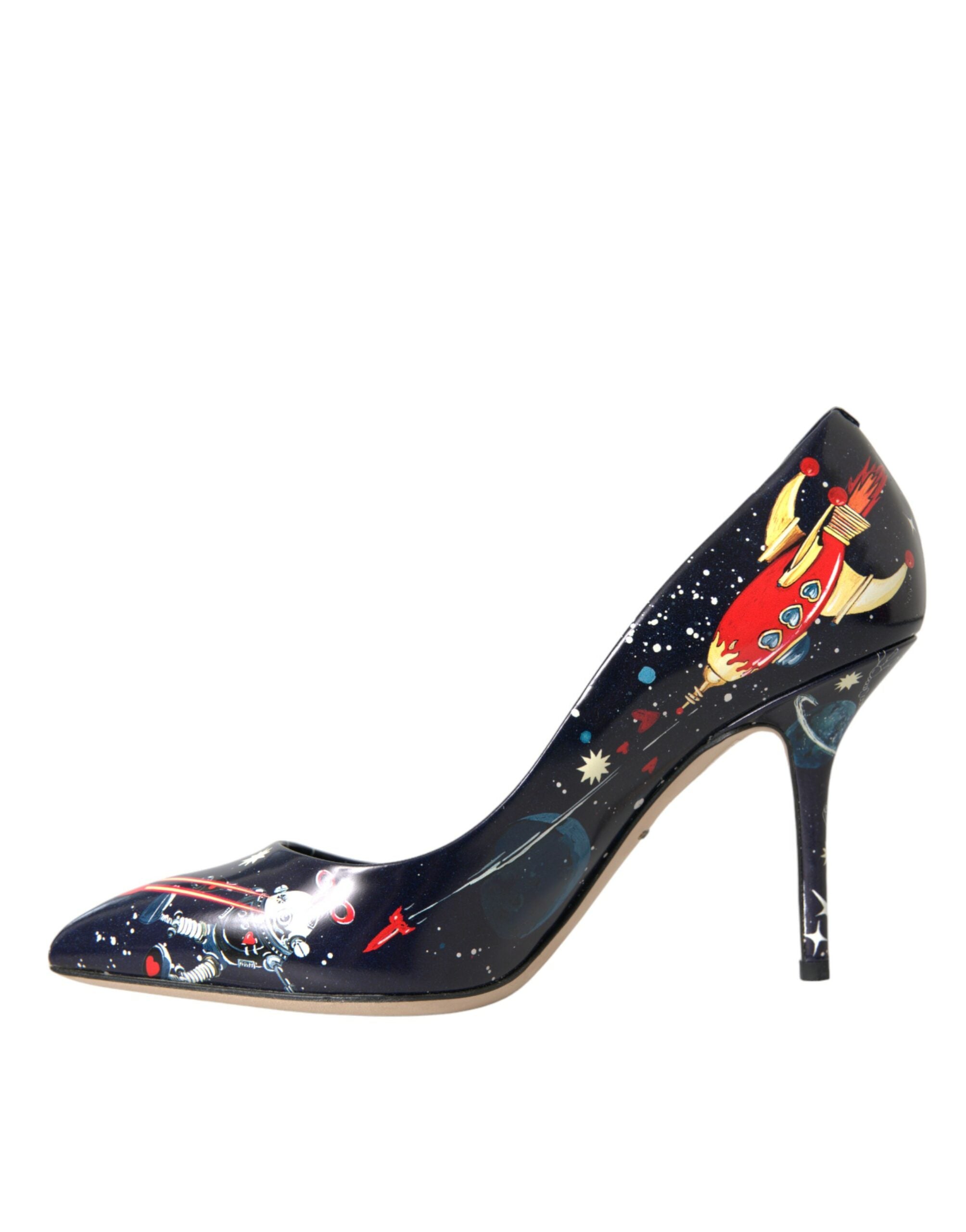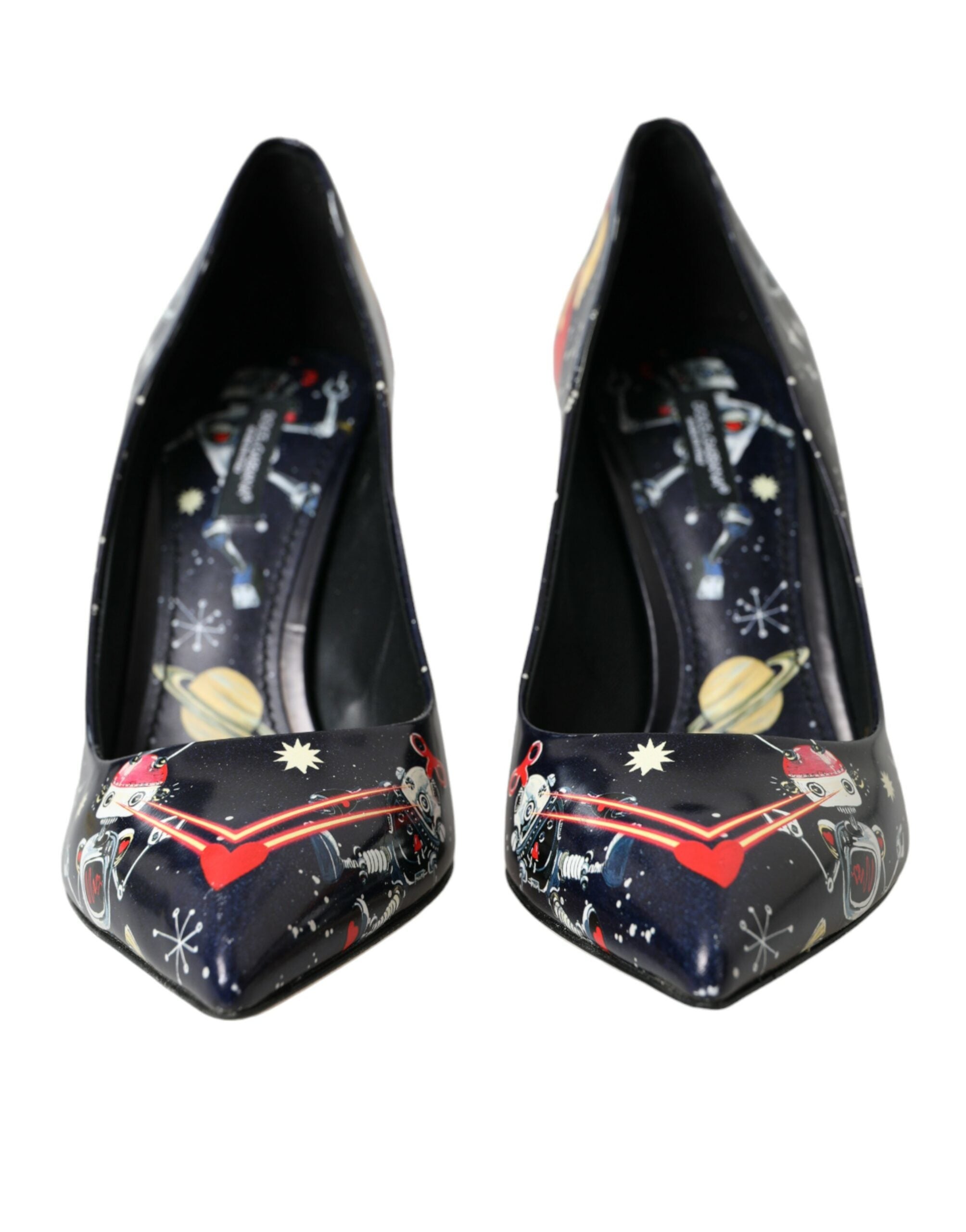 Dolce & Gabbana Blue Space Robot Leather Heels Pumps Shoes