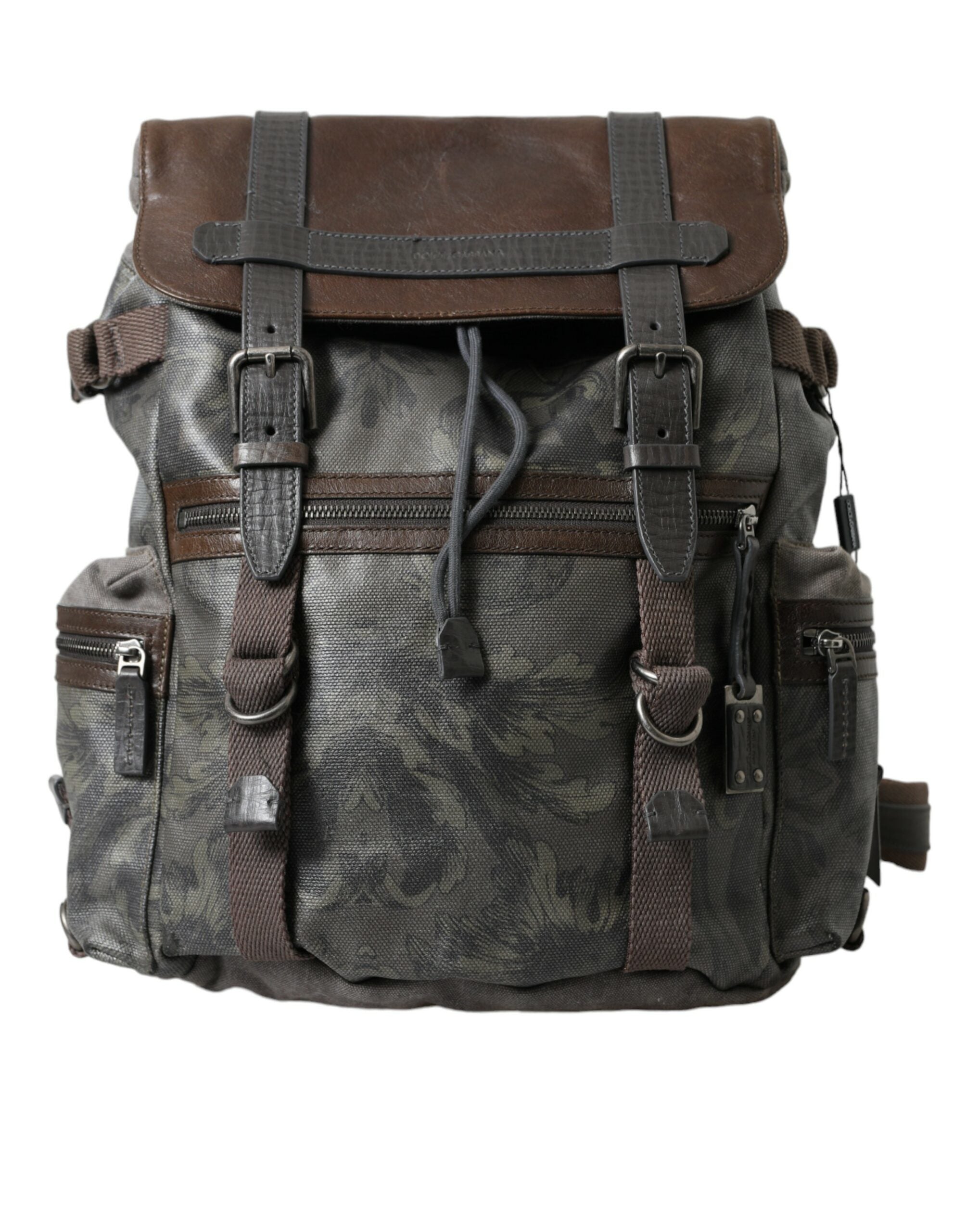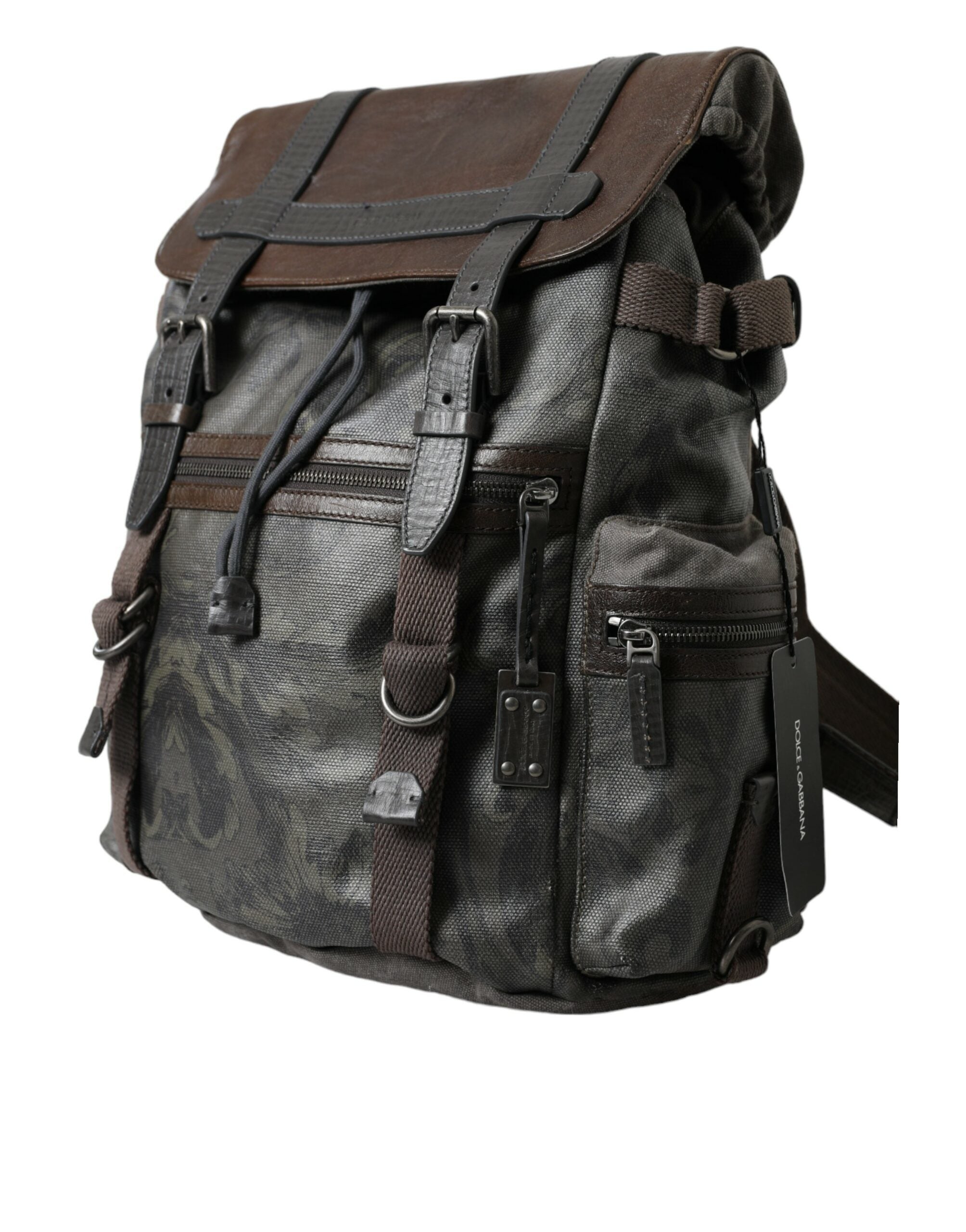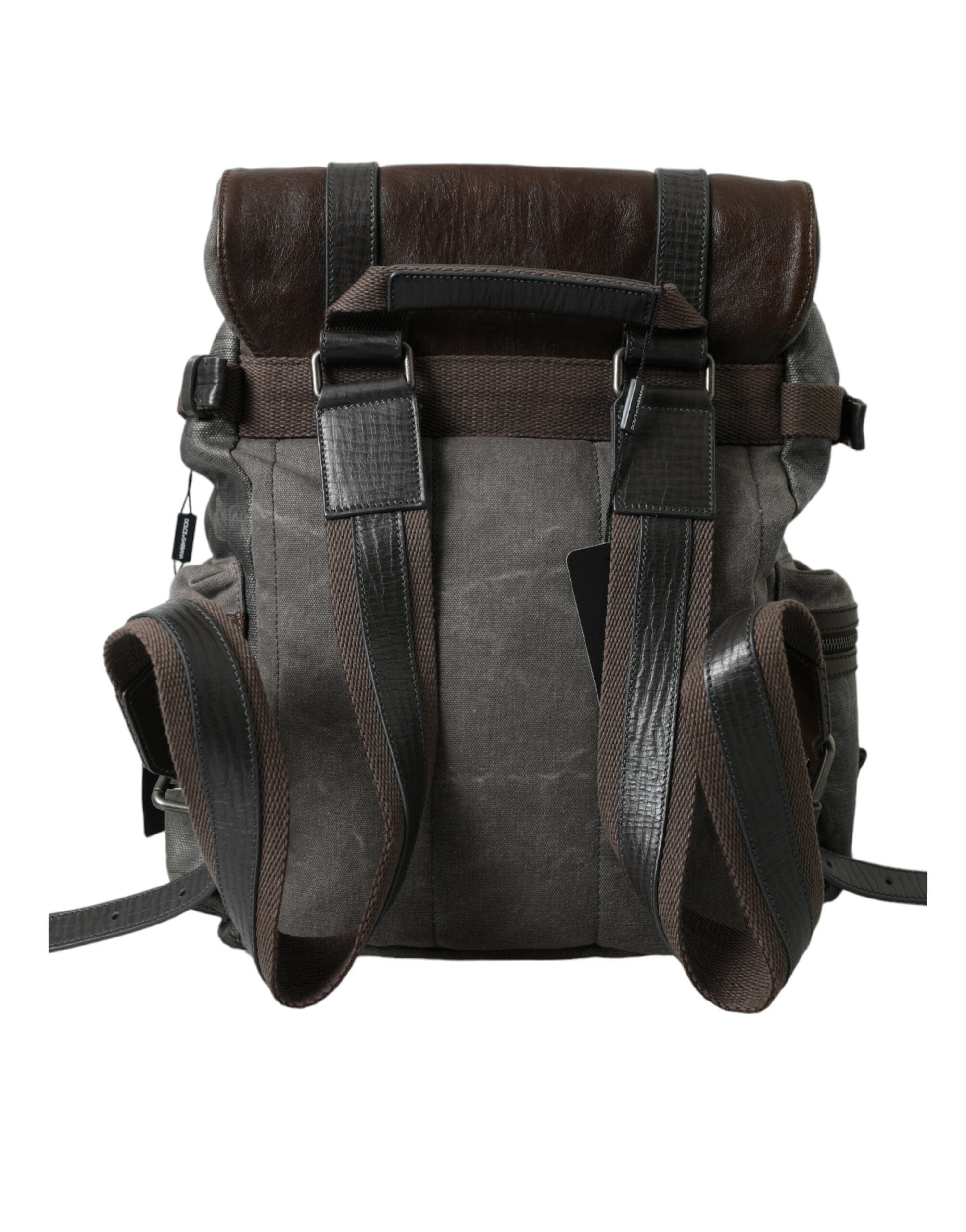 Dolce & Gabbana Elegant Green Canvas & Leather Backpack