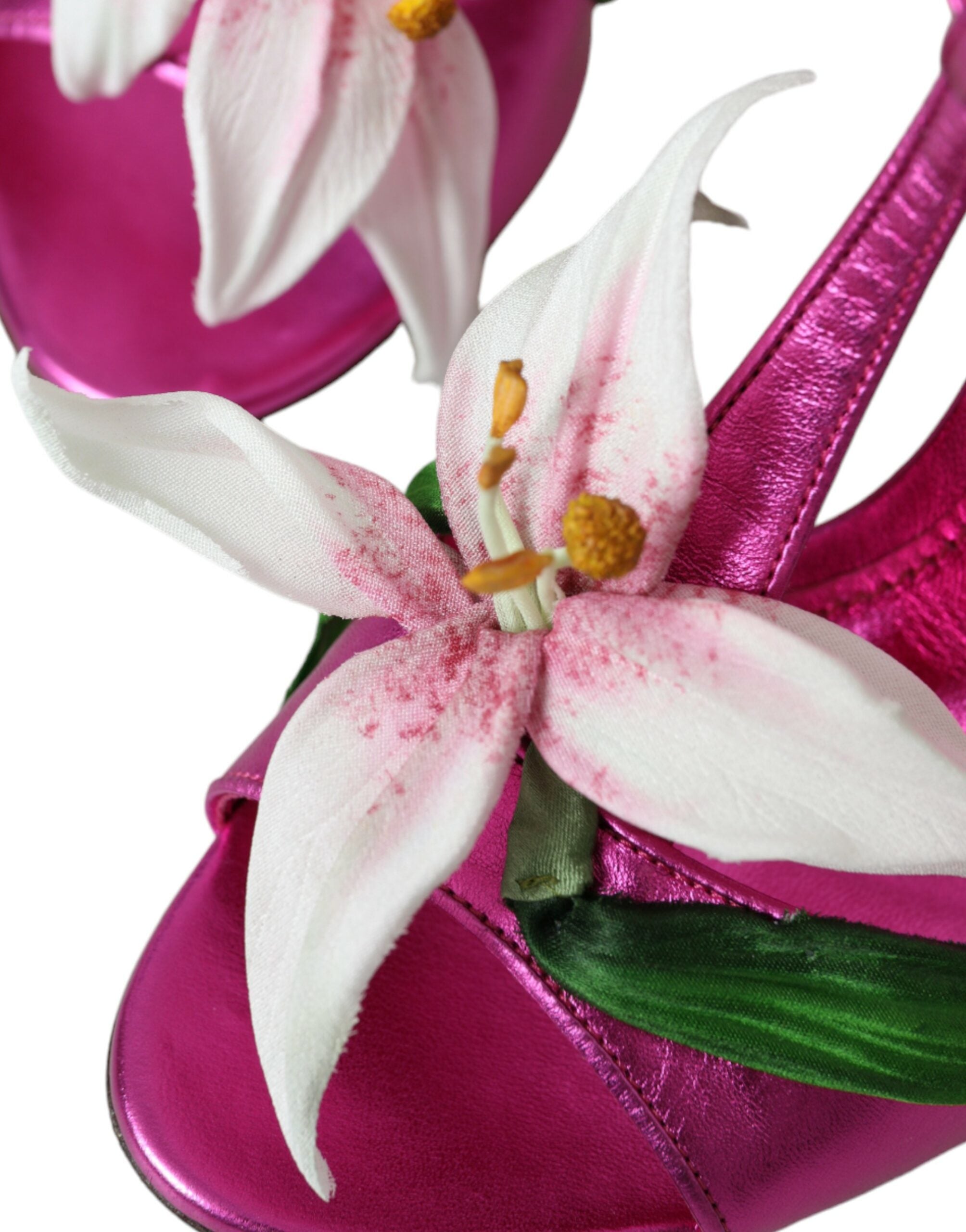 Dolce & Gabbana Pink Leather Crystals Floral Sandals Shoes