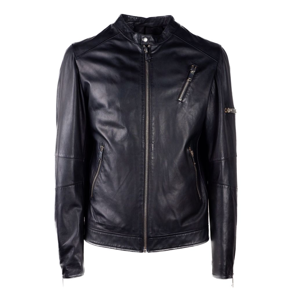 Emilio Romanelli Elegant Blue Leather Jacket - Slim Fit Chic
