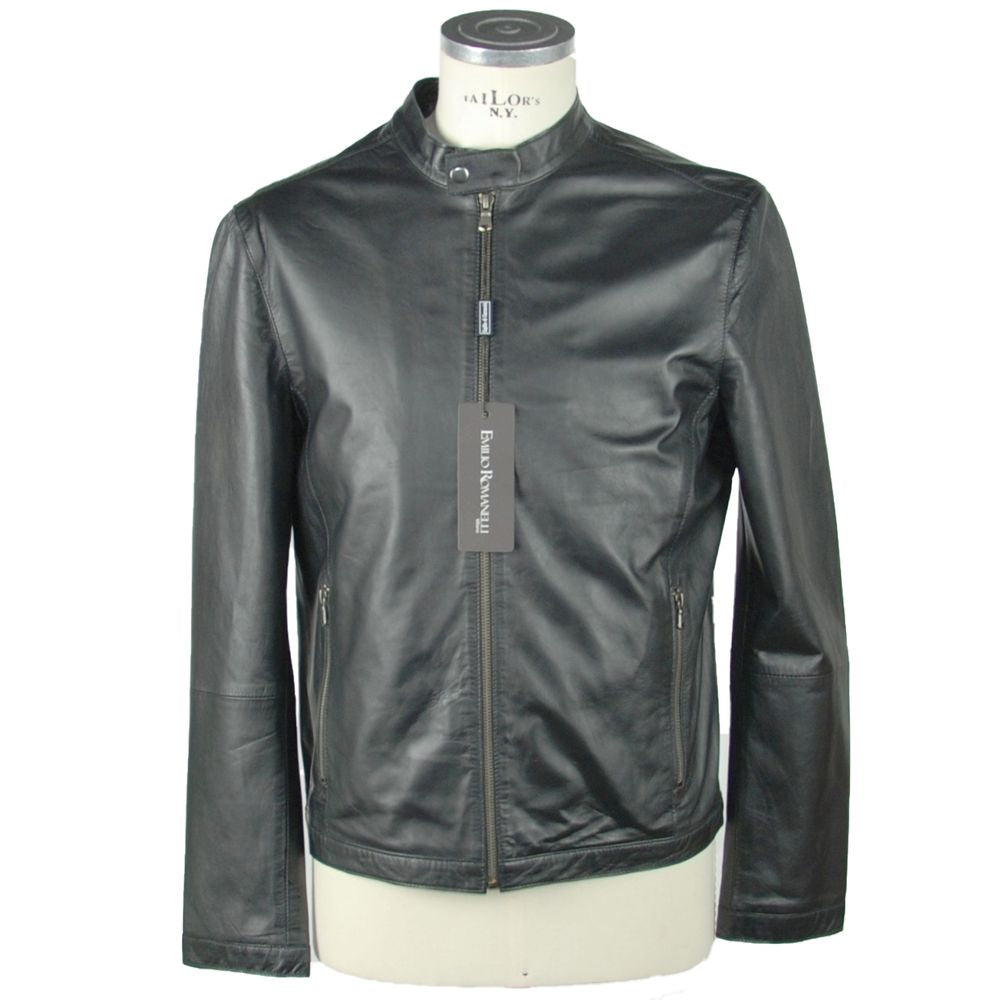 Emilio Romanelli Sleek Leather Black Jacket