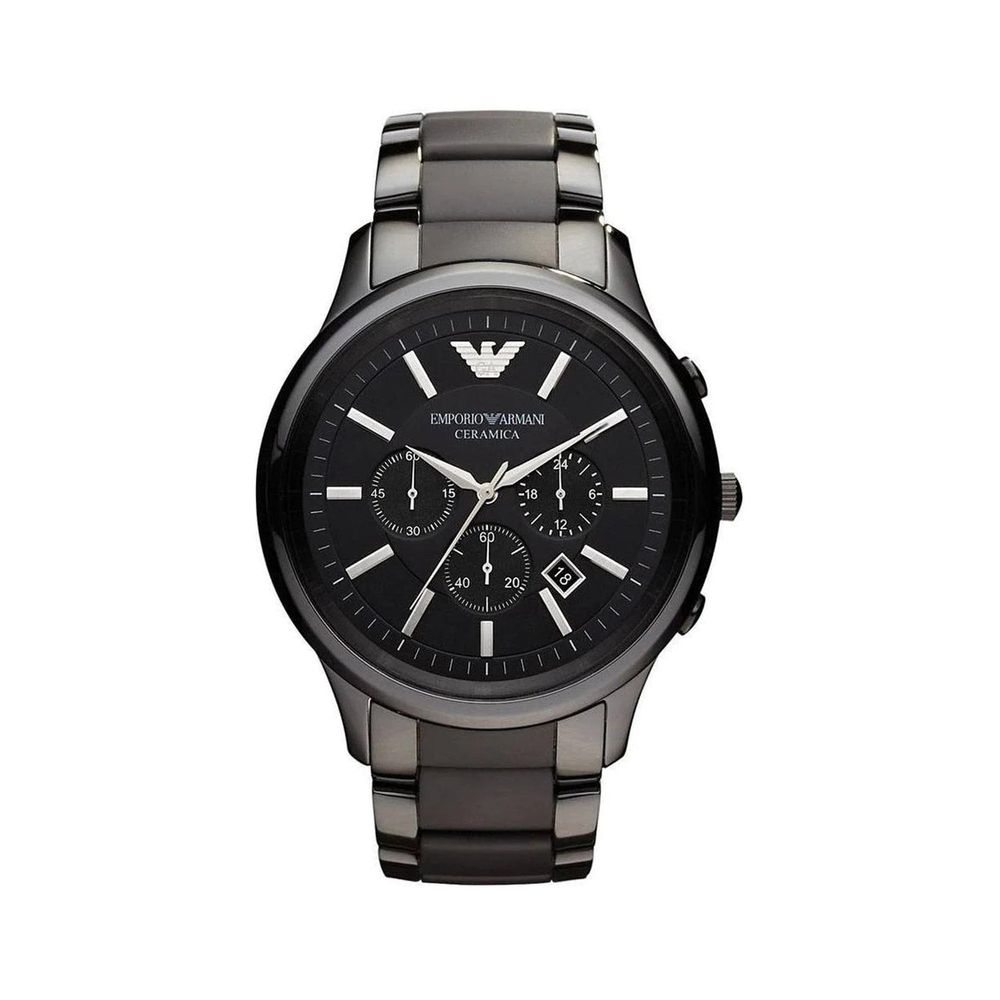 Emporio Armani Sleek Black Steel Chronograph Timepiece