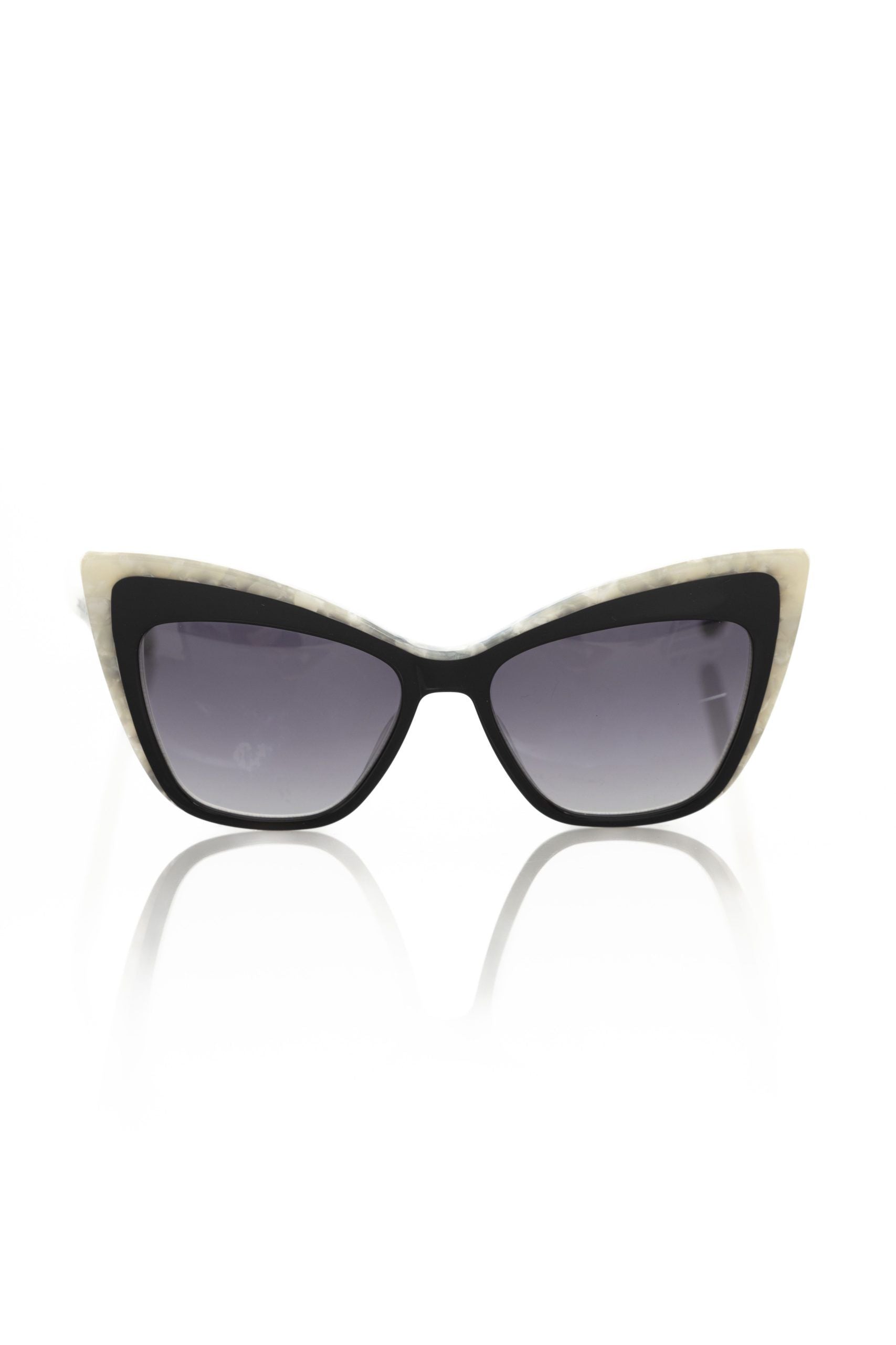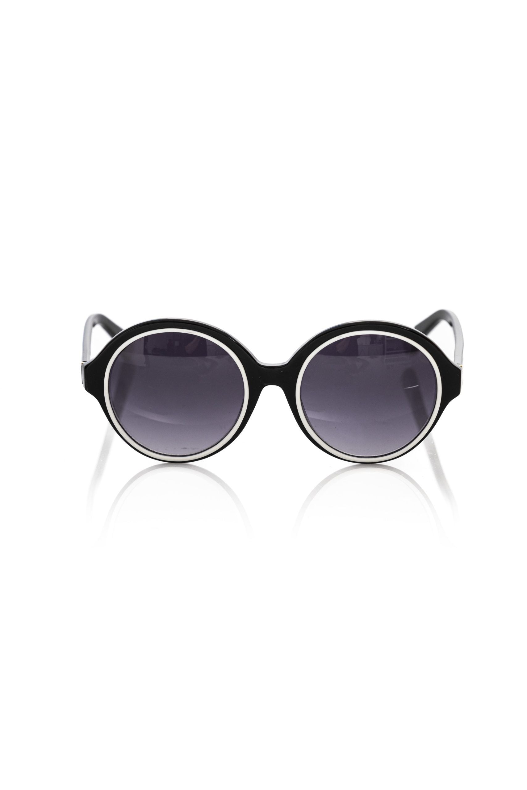 Frankie Morello Elegant Black Round Sunglasses with White Accent