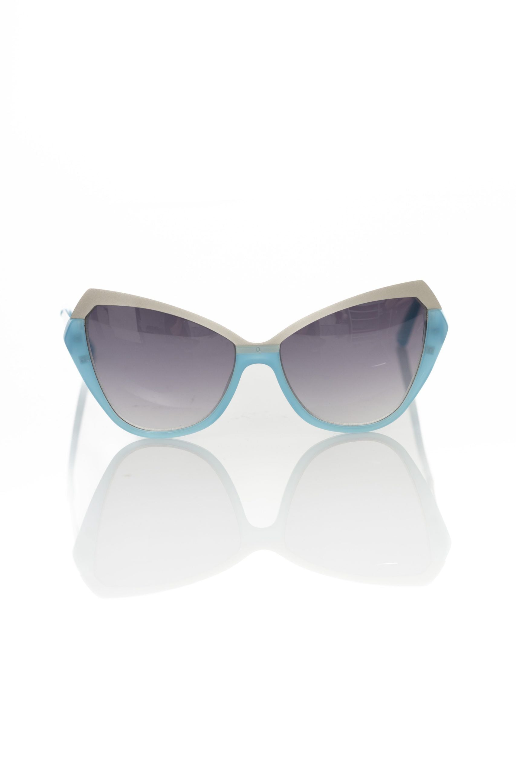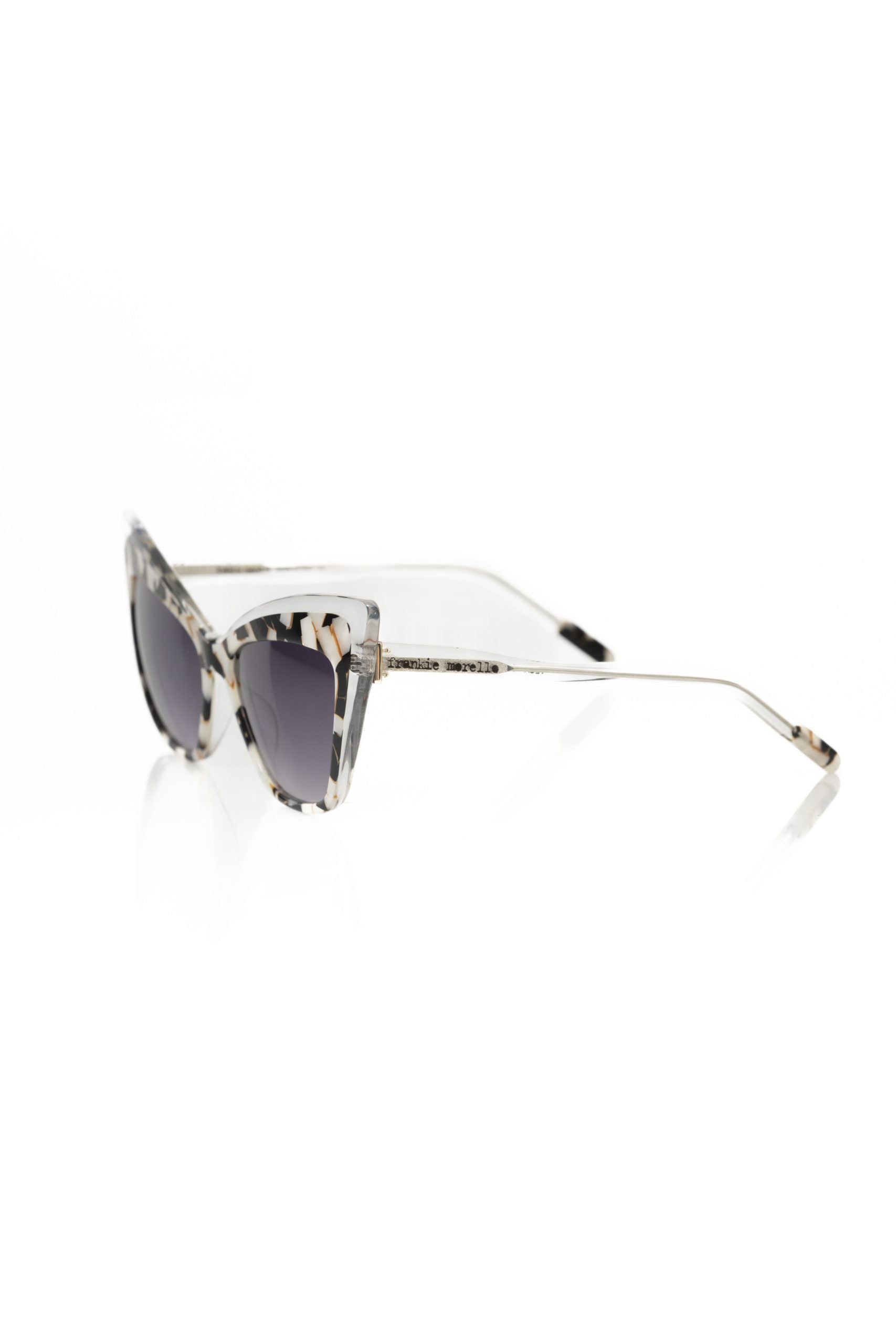 Frankie Morello Chic White Round Sunglasses with Blue Shaded Lens