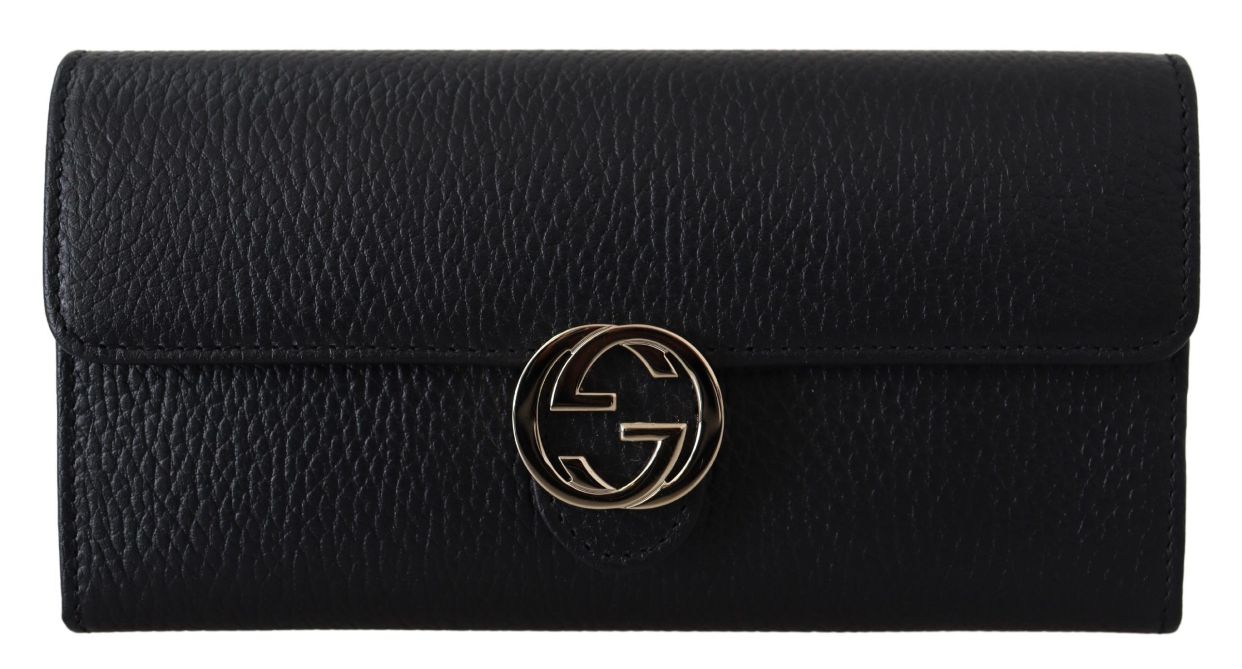 Gucci Elegant Black Leather Wallet with GG Snap Closure