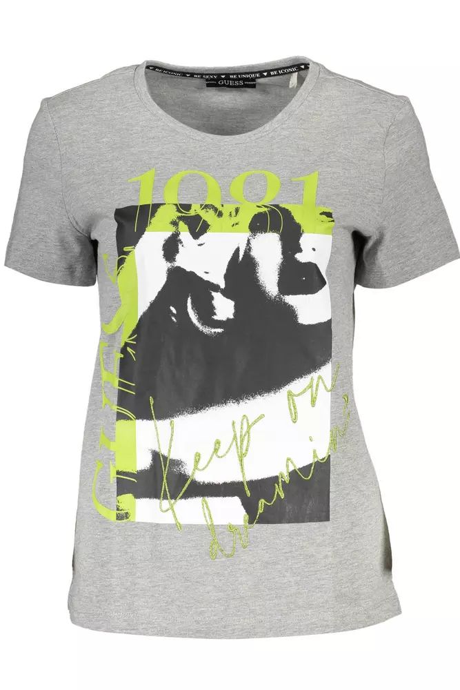 Guess Jeans Chic Gray Printed Crew Neck Tee for Her