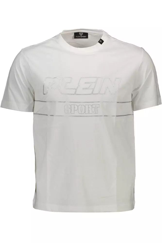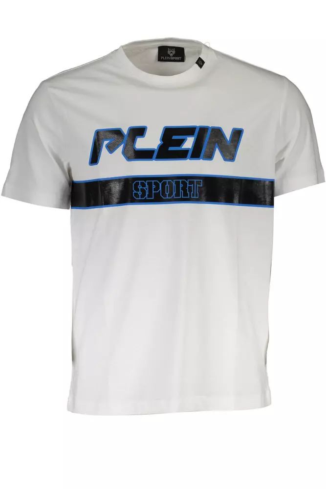 Plein Sport Crisp White Cotton Crew Neck Tee with Print
