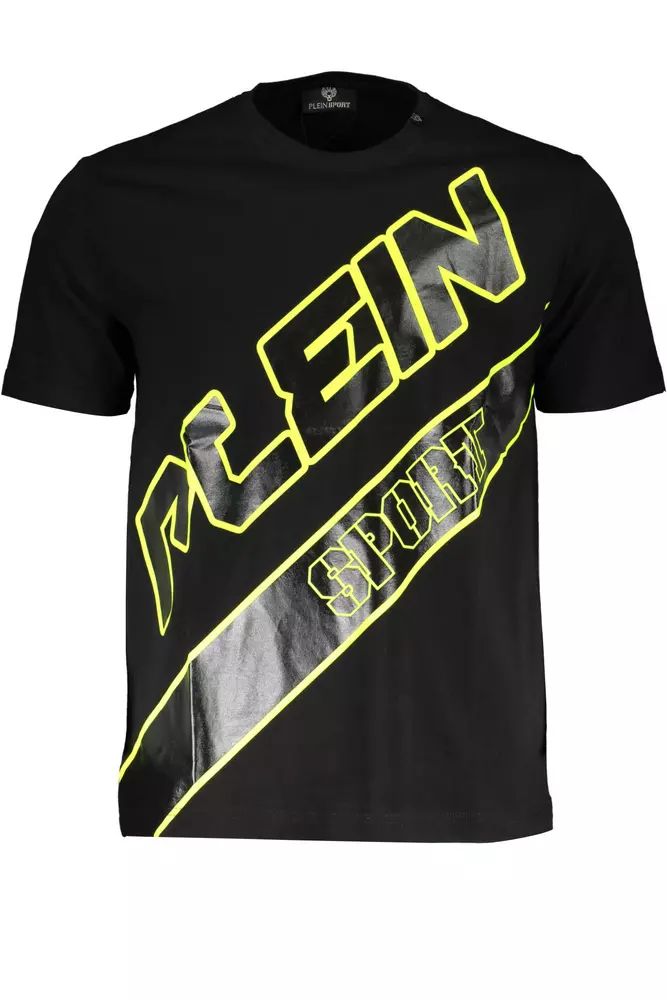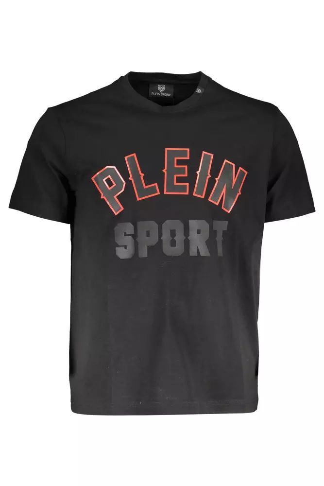 Plein Sport Sleek Black Cotton Crew Neck Tee with Logo Print