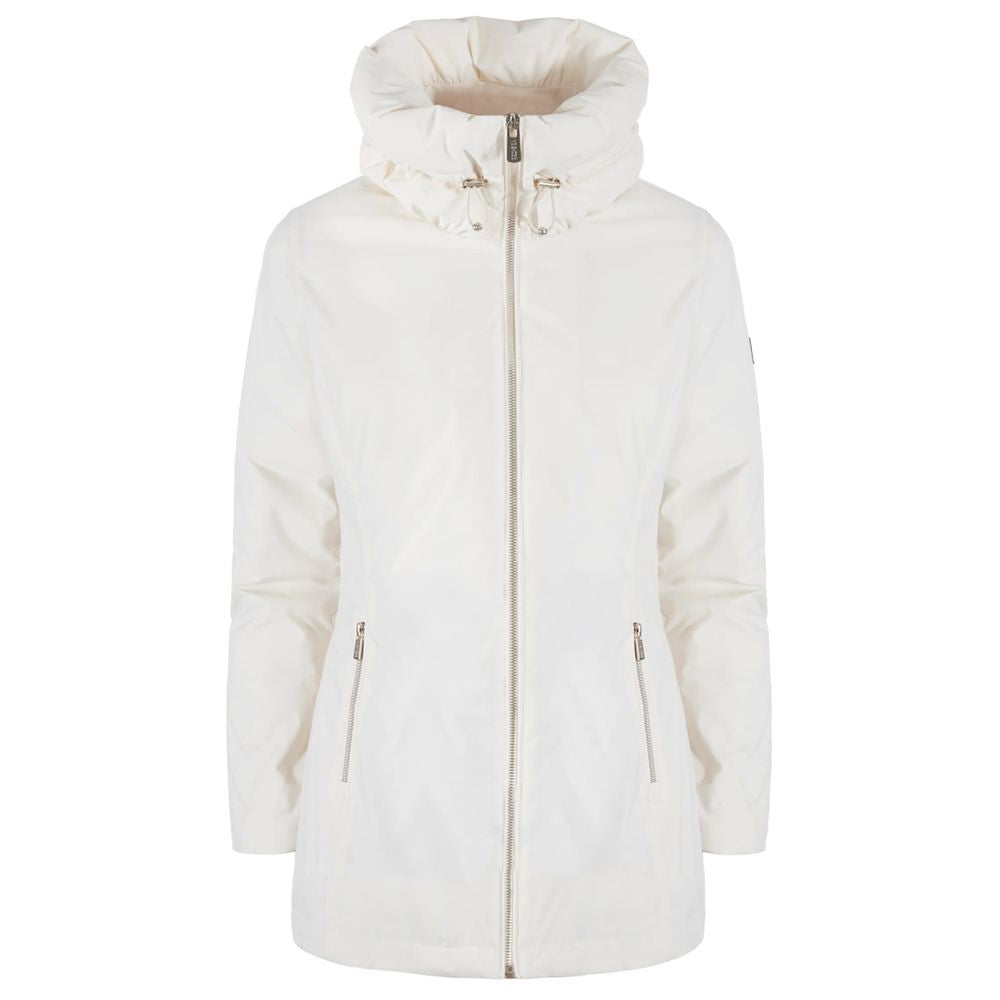 Yes Zee Chic White Down Jacket with Fur-Trimmed Hood