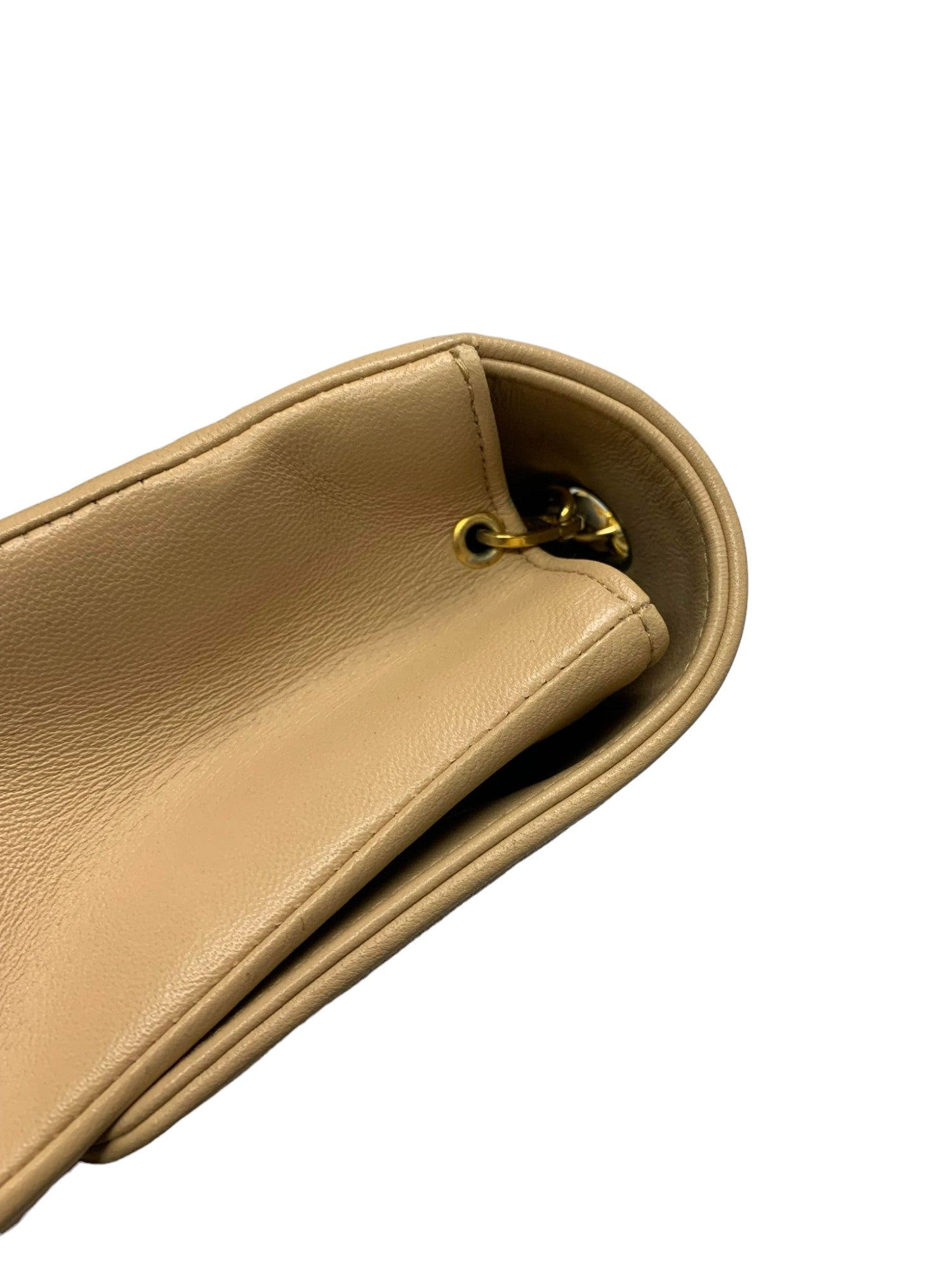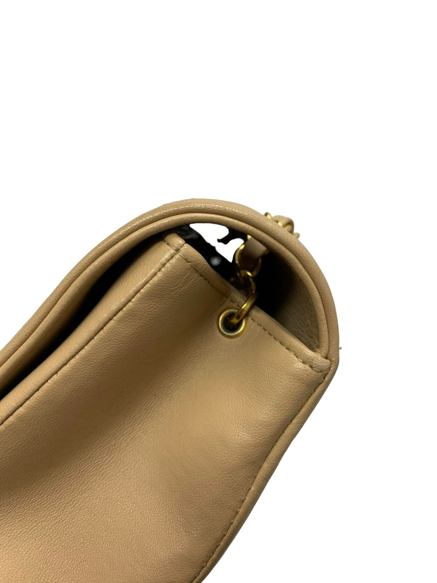 Exquisite Craftsmanship: Meticulously crafted from supple beige lambskin, this bag showcases the classic quilted design synonymous with luxury and elegance.