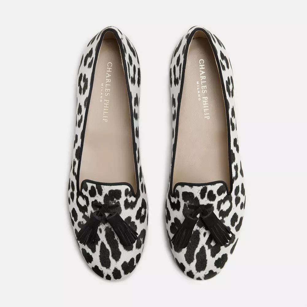 Step into the epitome of Italian craftsmanship with Charles Philip’s SHEILA TASSEL loafers. These luxurious black and white leopard print slip-ons are designed for the fashion-forward individual seeking comfort without compromising on style. Boasting a slim 10mm rubber sole paired with a plush leather lining and insole, these loafers are finished with a soft cotton heel pad to ensure maximum comfort for all-day wear. Handmade in Italy, these loafers are a testament to exquisite attention to detail and timeless design.