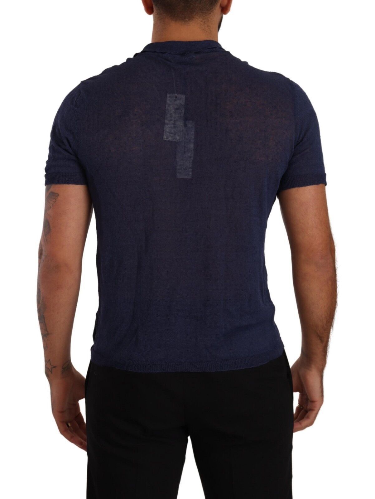 Daniele Alessandrini Navy Linen Blend Collared T-Shirt
