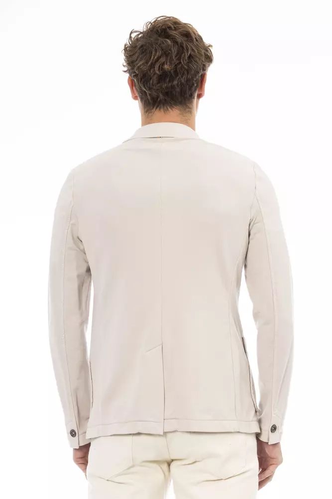 Refined and timeless, this Chic Beige Cotton Blend Jacket from Distretto12 is the perfect addition to any gentleman’s wardrobe. The classic model featuring front pockets exudes elegance, while the button closure ensures a secure and stylish fit. Crafted with comfort and durability in mind, the high-quality blend of materials offers both flexibility and breathability.