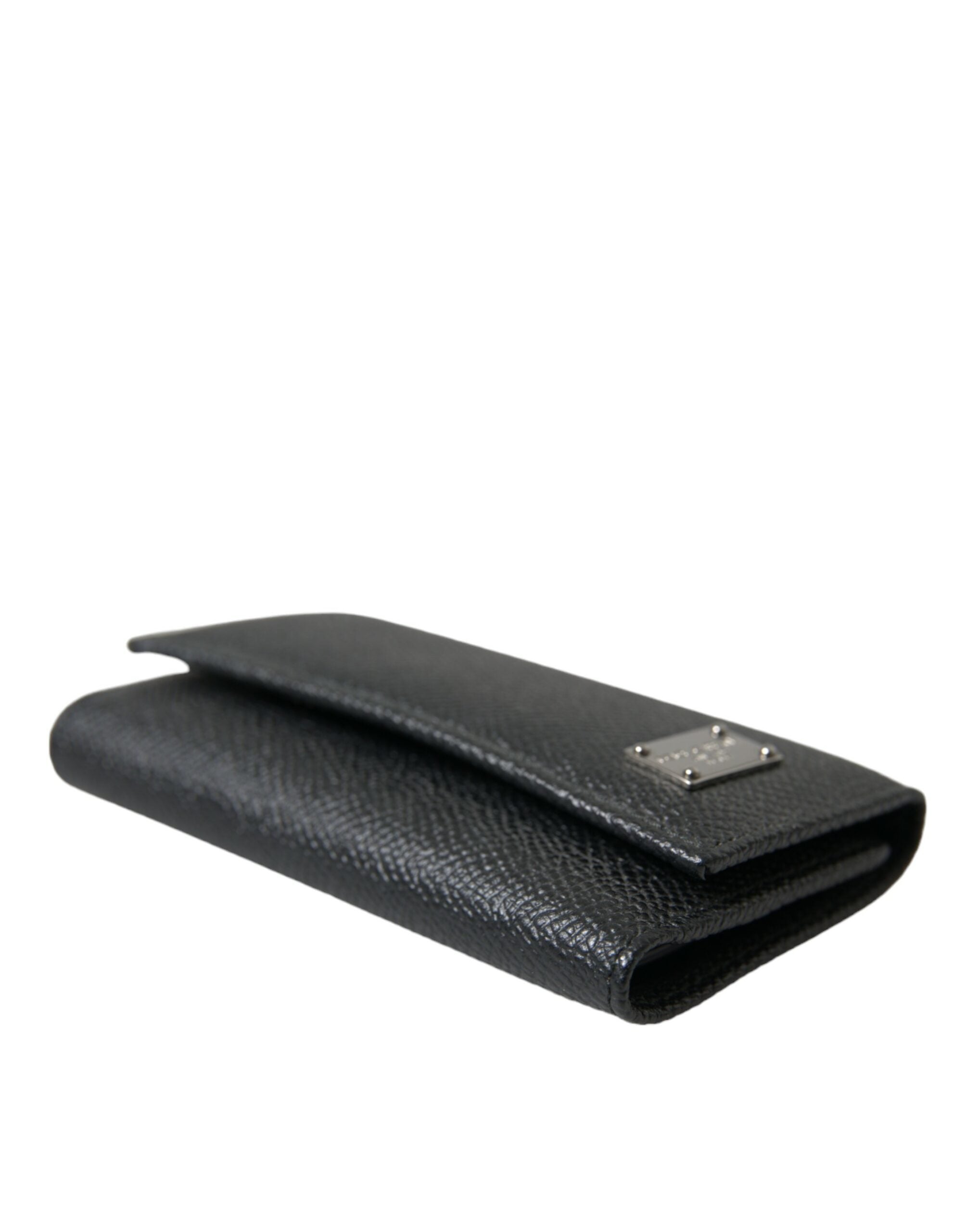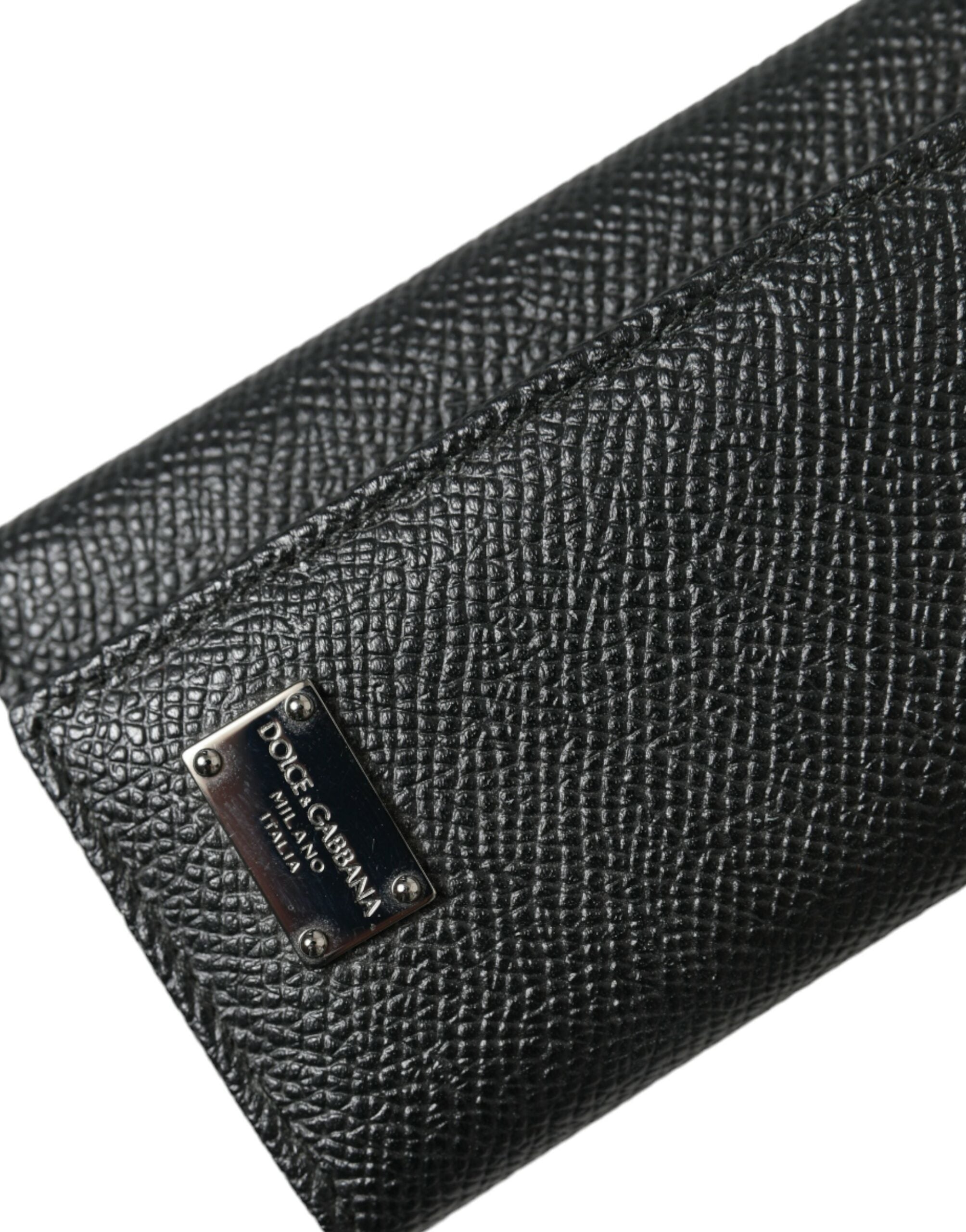 Dolce & Gabbana Black Calf Leather Logo Plaque Trifold Keyring Key Holder