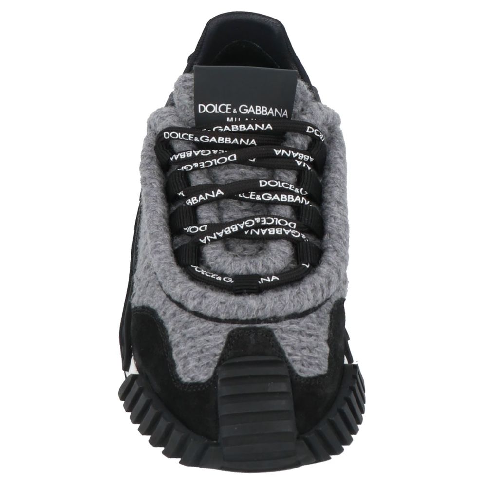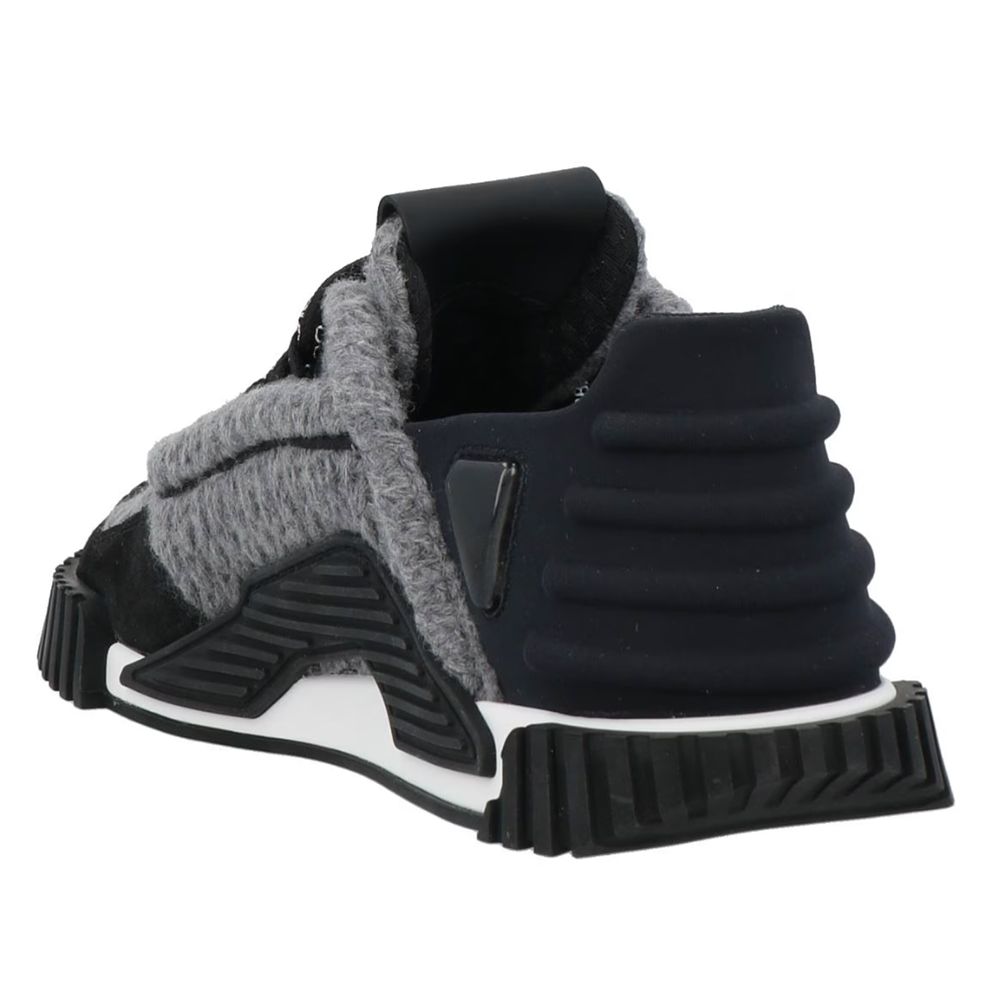 Dolce & Gabbana low sneakers in grey wool and black technical fabric with rubber parts, part of the toe in black suede, two-tone rubber sole with logo printed on the bottom
