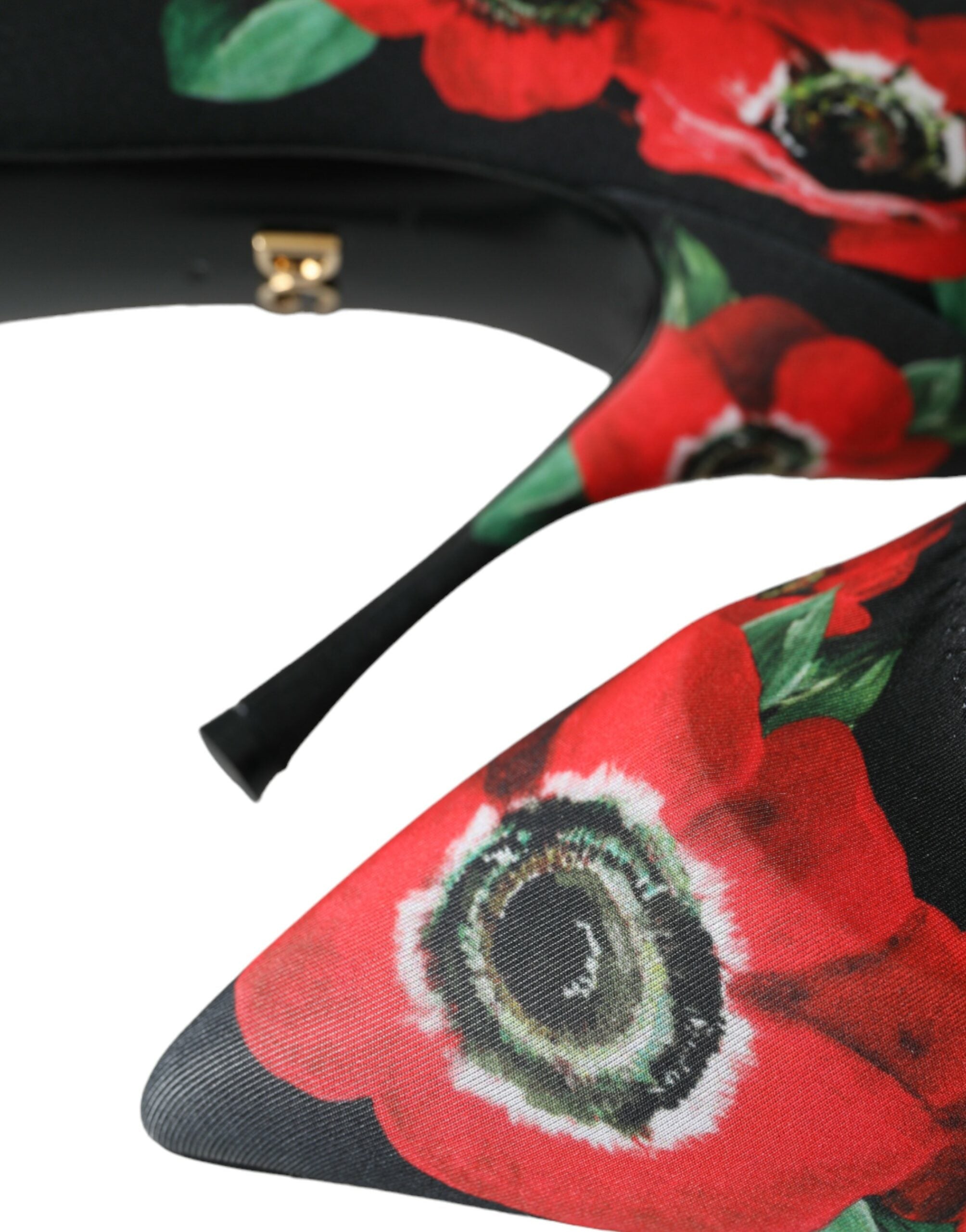 Dolce & Gabbana Black Floral Crystal Mary Jane Pumps Shoes