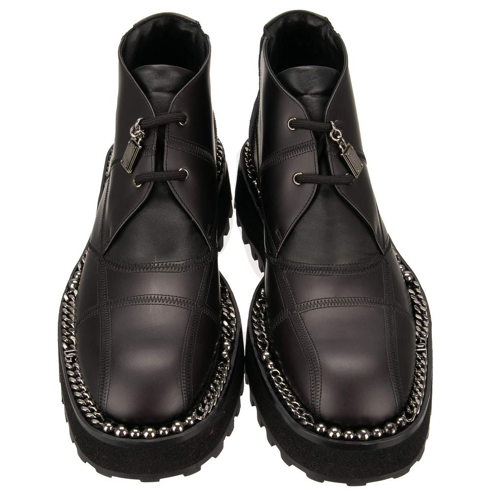 Dolce & Gabbana lambskin ankle boots with thick rubber lug sole reinforced by a metal chain, nylon-covered back of heel