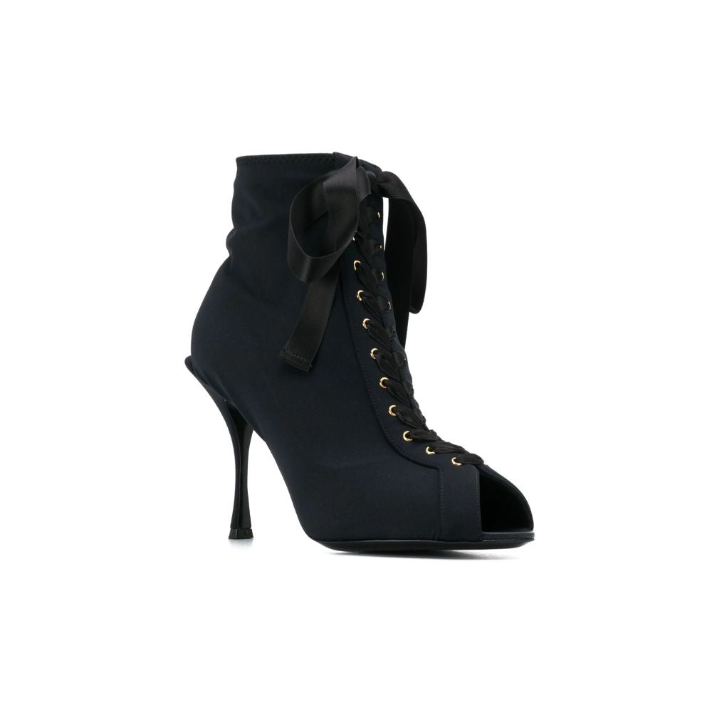 Dolce & Gabbana ankle boots in calfskin and stretch nylon cover with open toe and laces