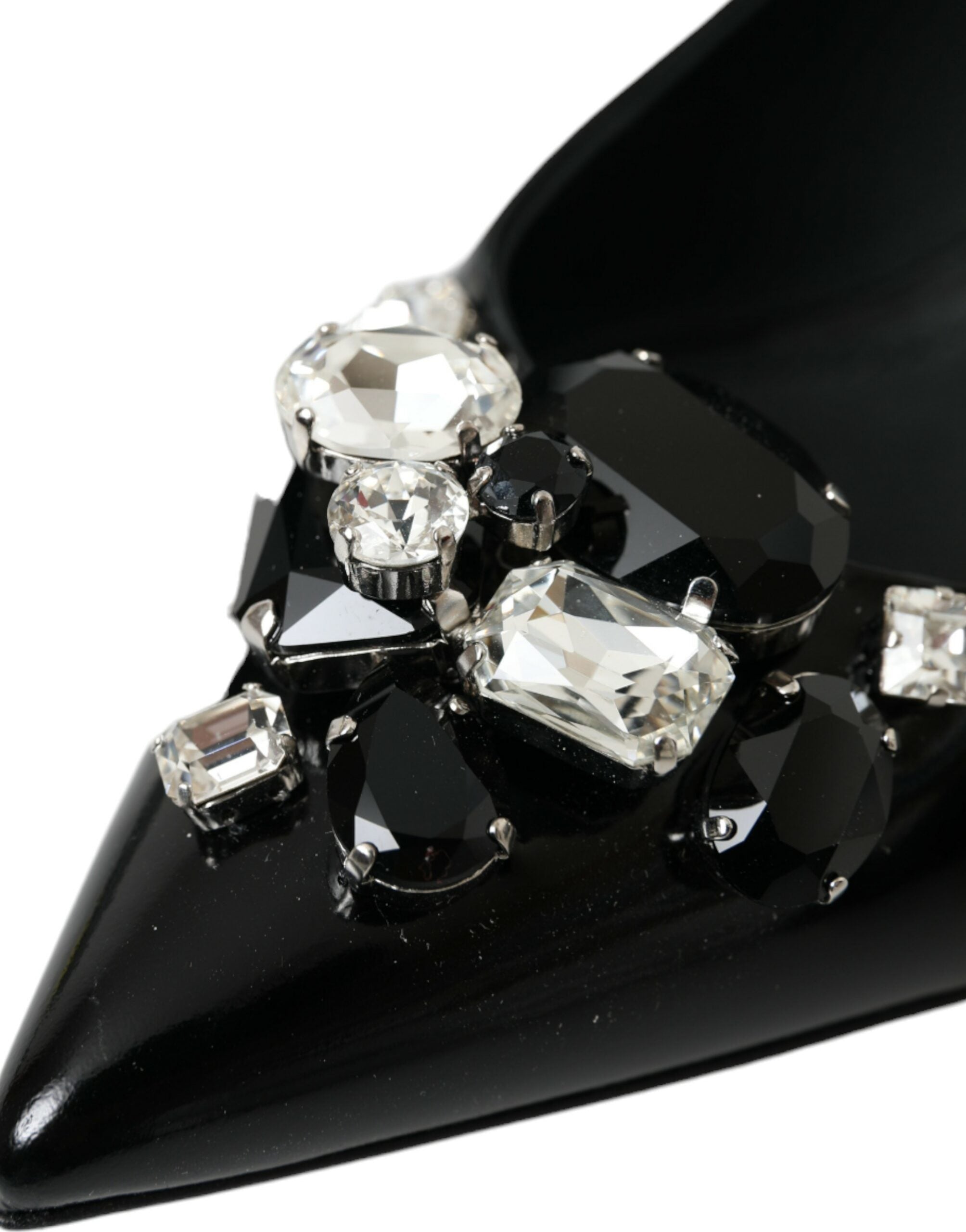 Dolce & Gabbana Black Patent Leather Crystal Slingback Shoes