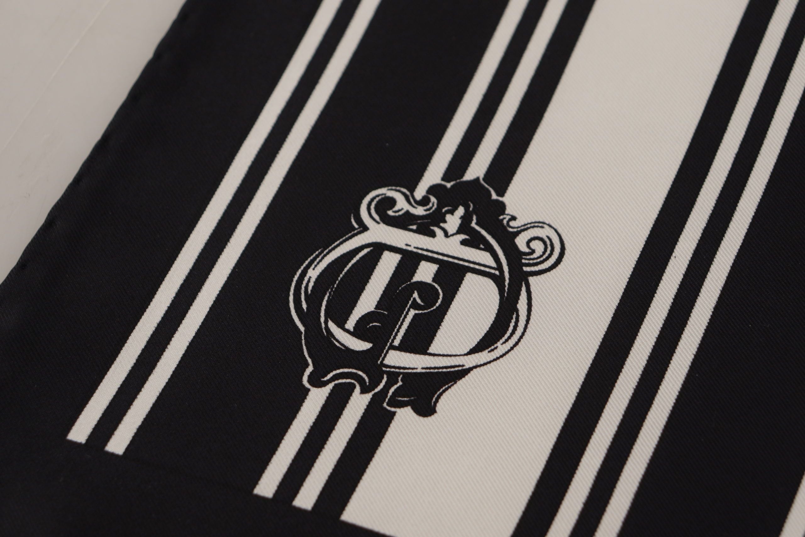 Indulge in the epitome of style with this exquisite 100% Authentic Men’s Square Scarf Wrap, a stunning accessory by Dolce & Gabbana. Its luxurious silk material and sophisticated black and white striped design make it a perfect addition to refine any outfit. Crafted in Italy, this scarf embodies elegance with subtle logo details for an unmistakable mark of quality.