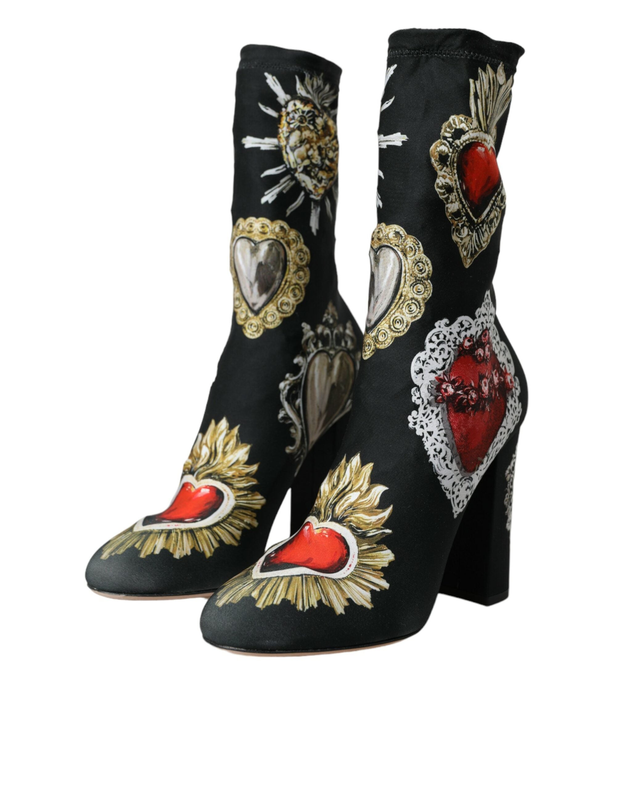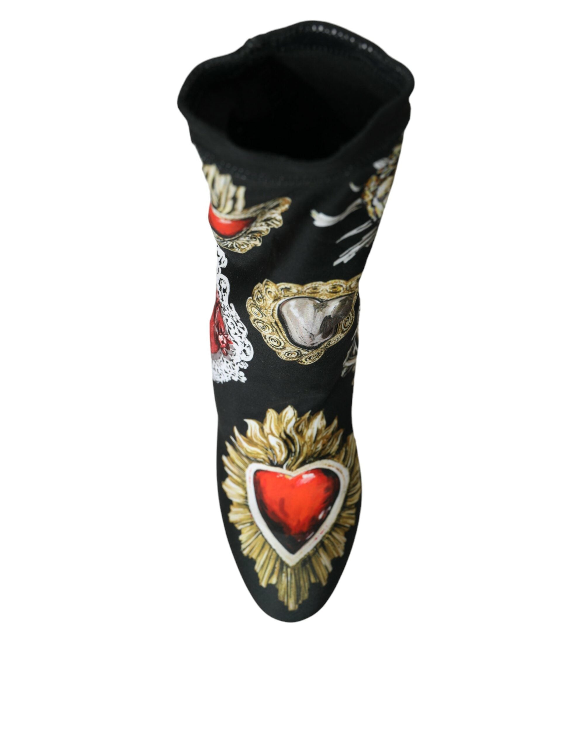Dolce & Gabbana Black Stretch Socks Red Hearts Booties Shoes
