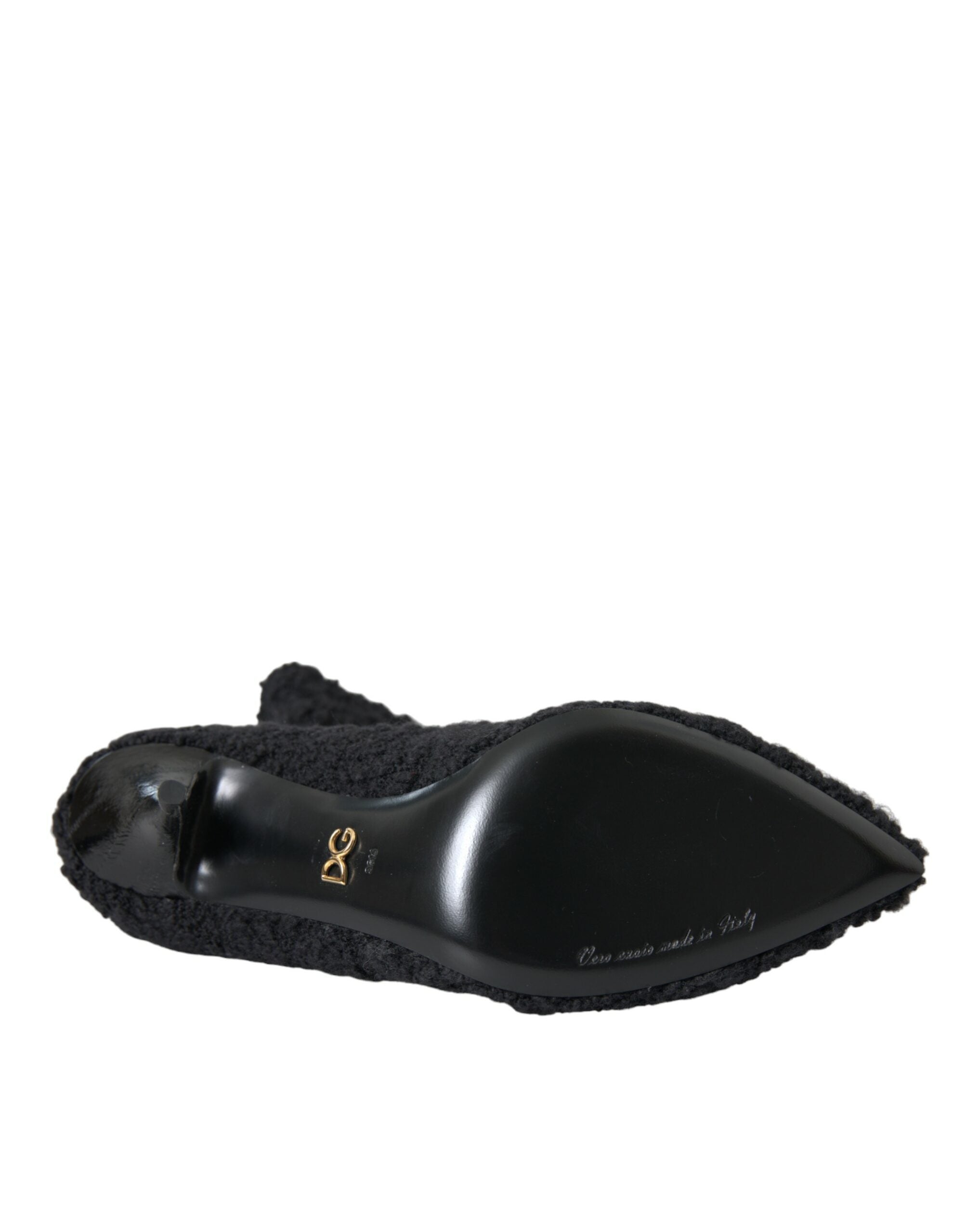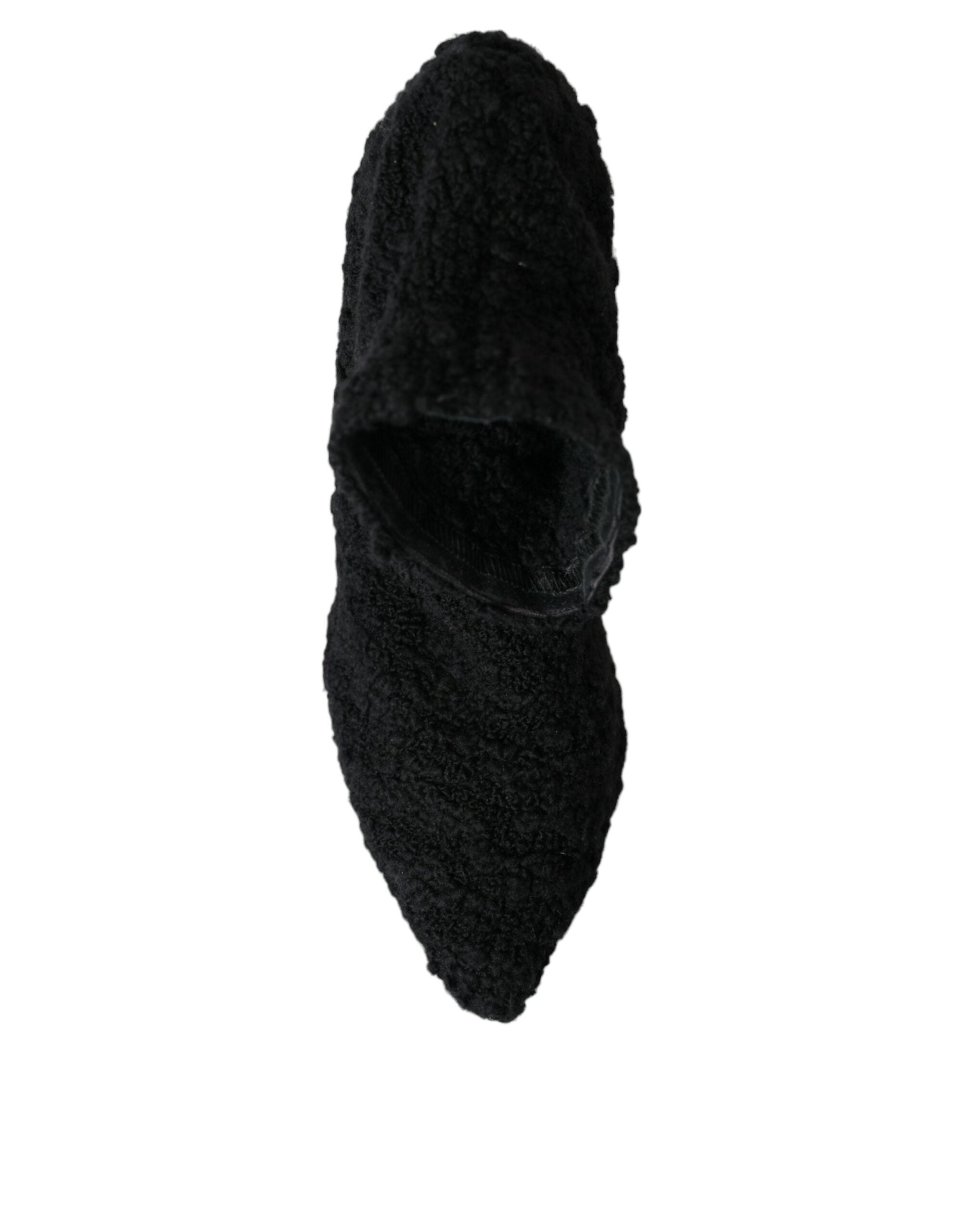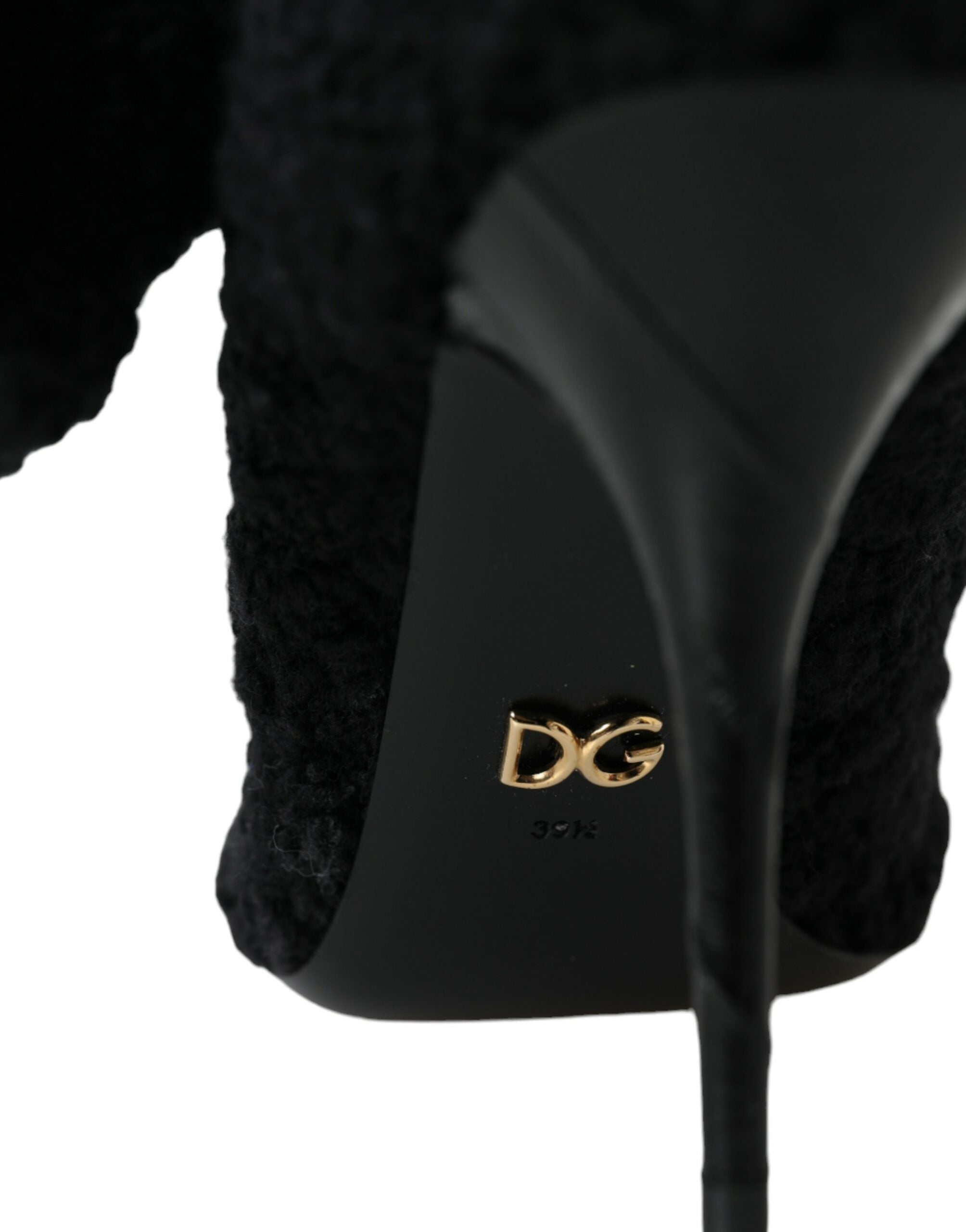 Dolce & Gabbana Black Suede Leather Ankle Heels Boots Shoes