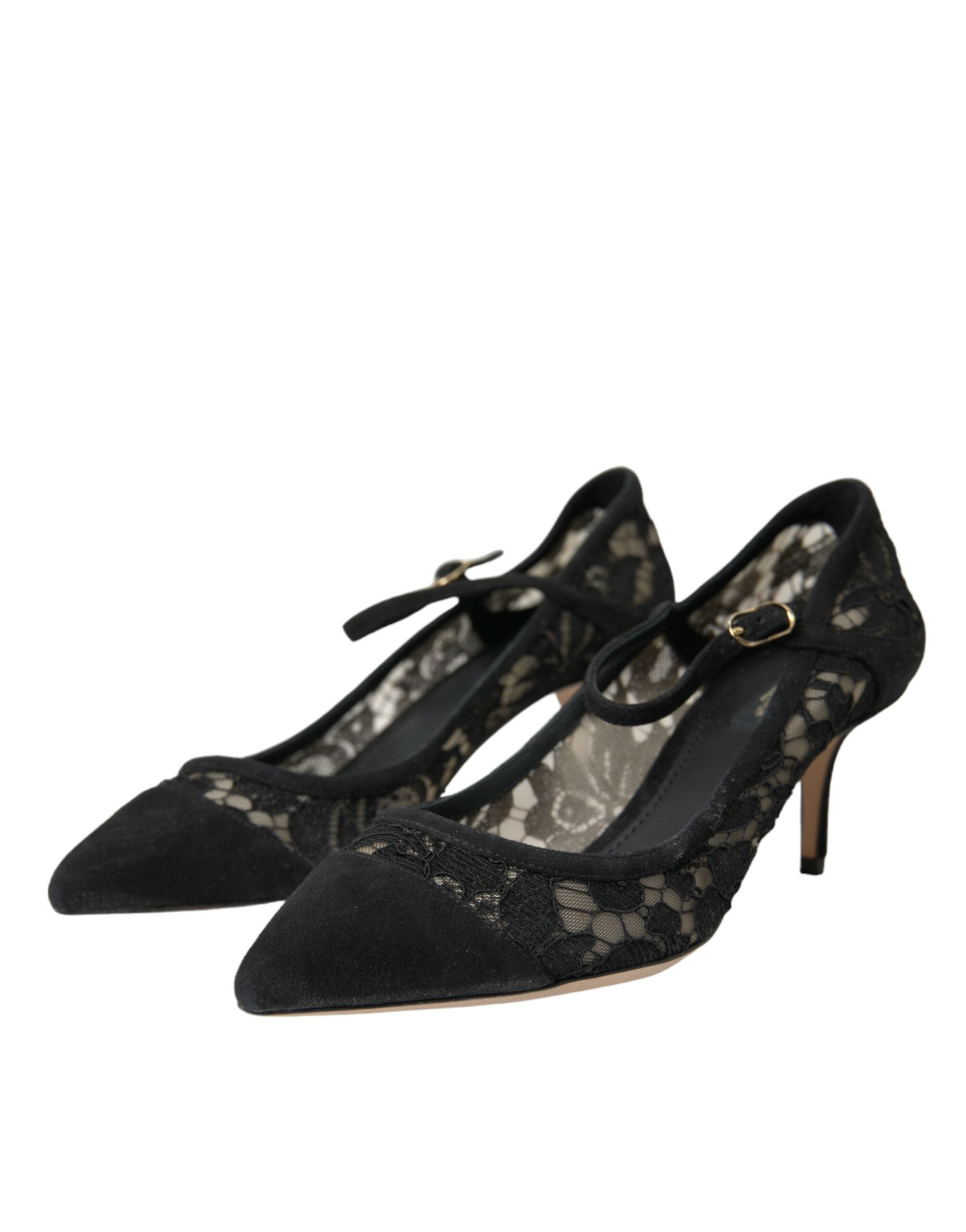 Dolce & Gabbana Black Taormina Lace Mary Janes Pumps Shoes