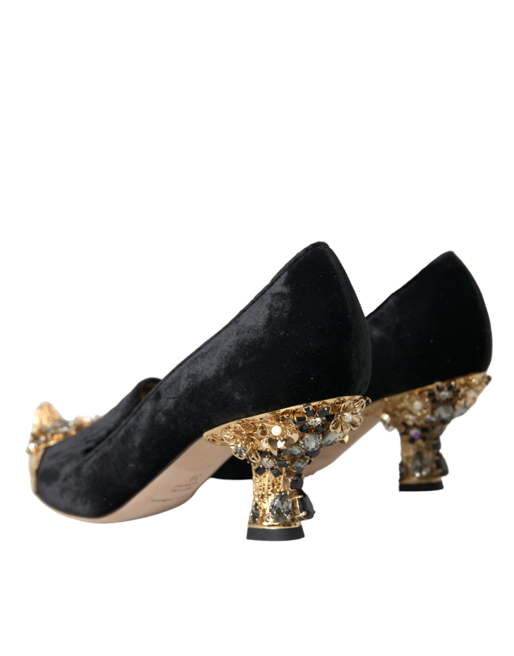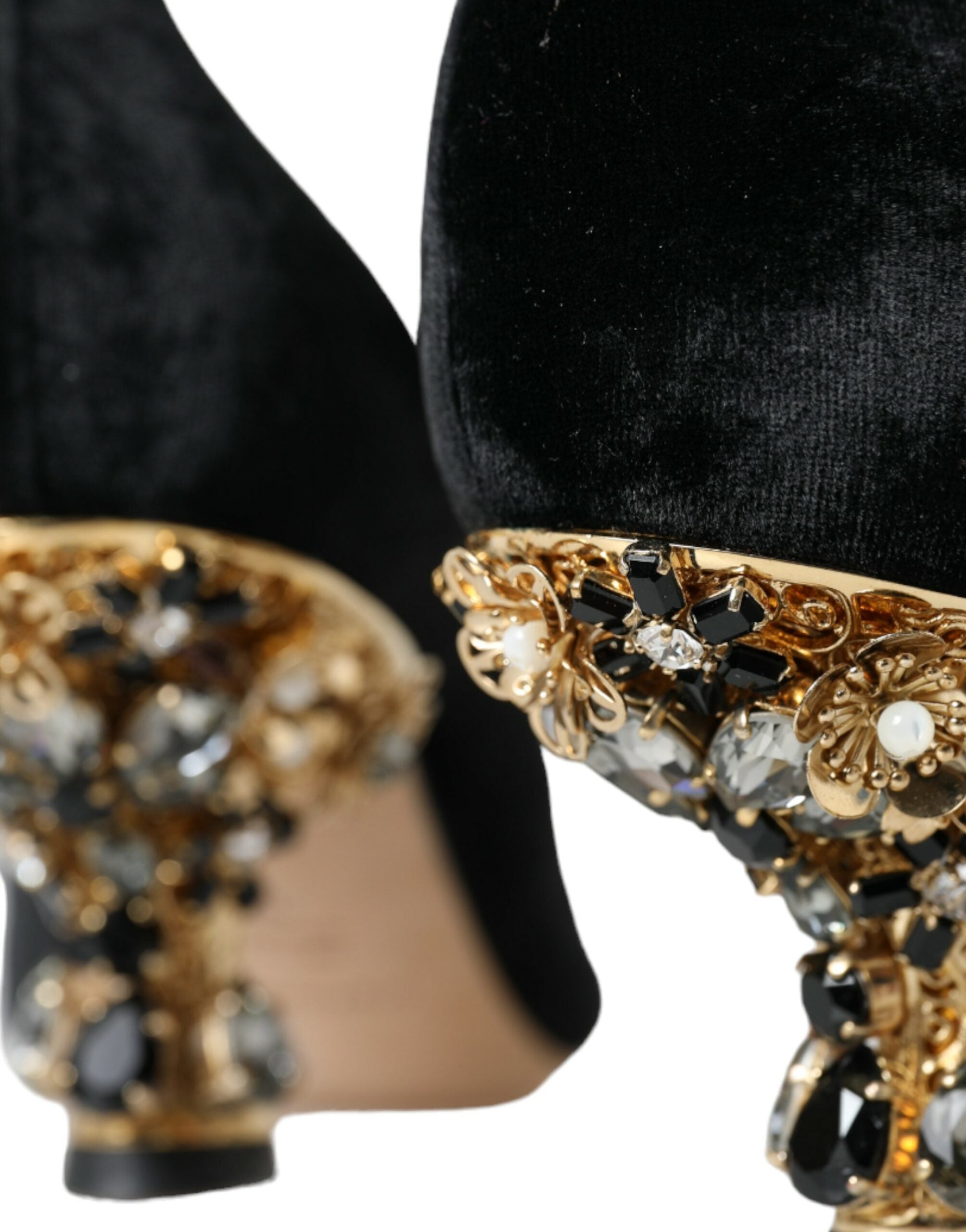 Dolce & Gabbana Black Velvet Embellished Heels Pumps Shoes