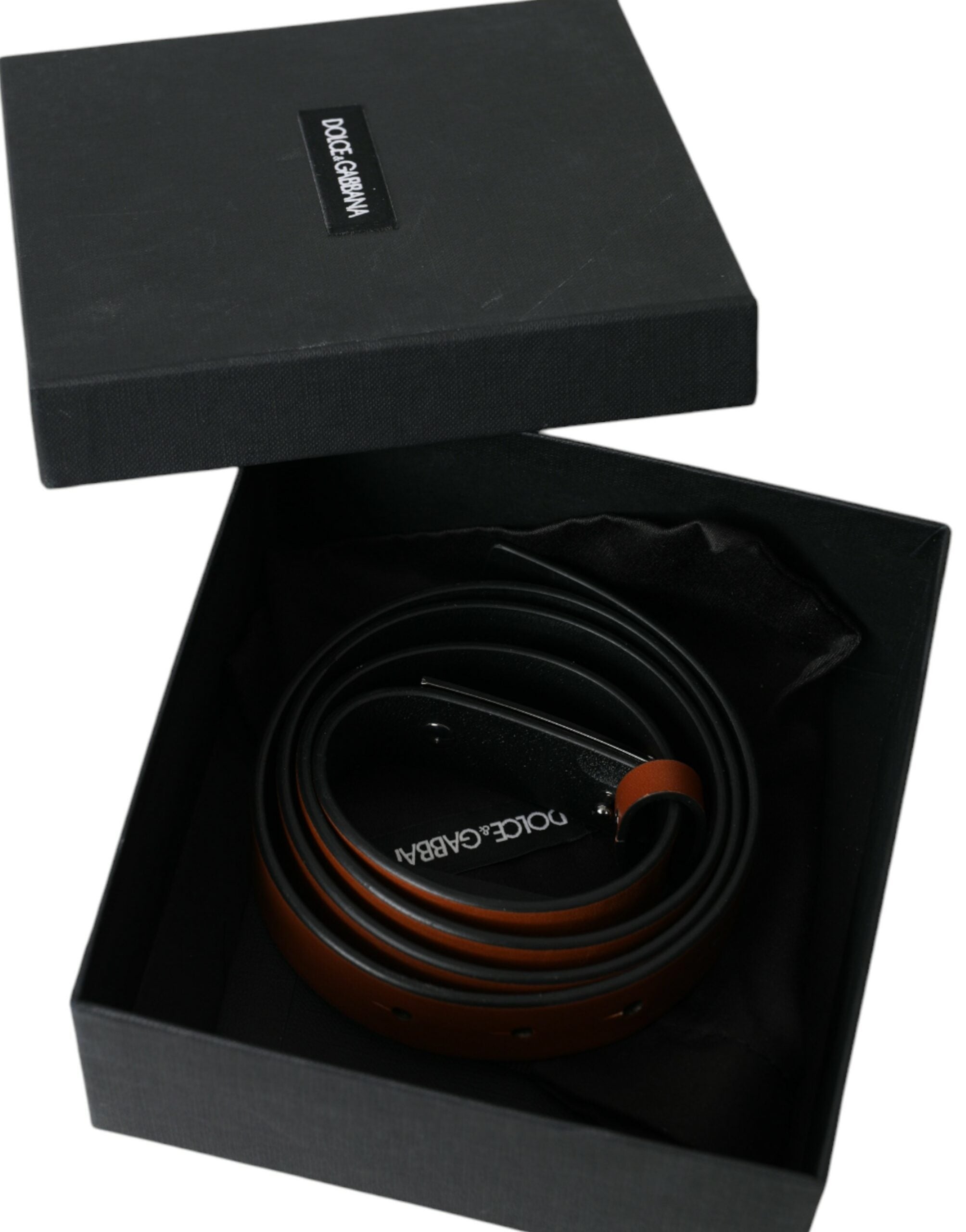 Dolce & Gabbana Brown Calf Leather Metal Logo Buckle Belt Men