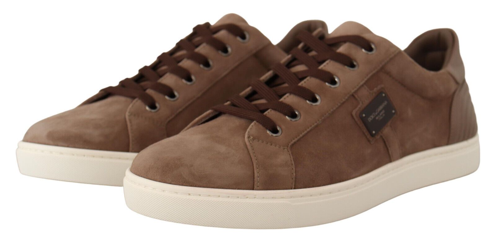 Step into luxury with these brand new, 100% Authentic Dolce & Gabbana casual sneakers for men. Crafted with the finest leather and suede, these brown sneakers epitomize elegance and high craftsmanship. Designed with comfort in mind, the durable rubber sole is perfect for everyday wear, while the subtle logo details add a touch of class. These sneakers are more than just shoes; they’re a statement of style, made in Italy.