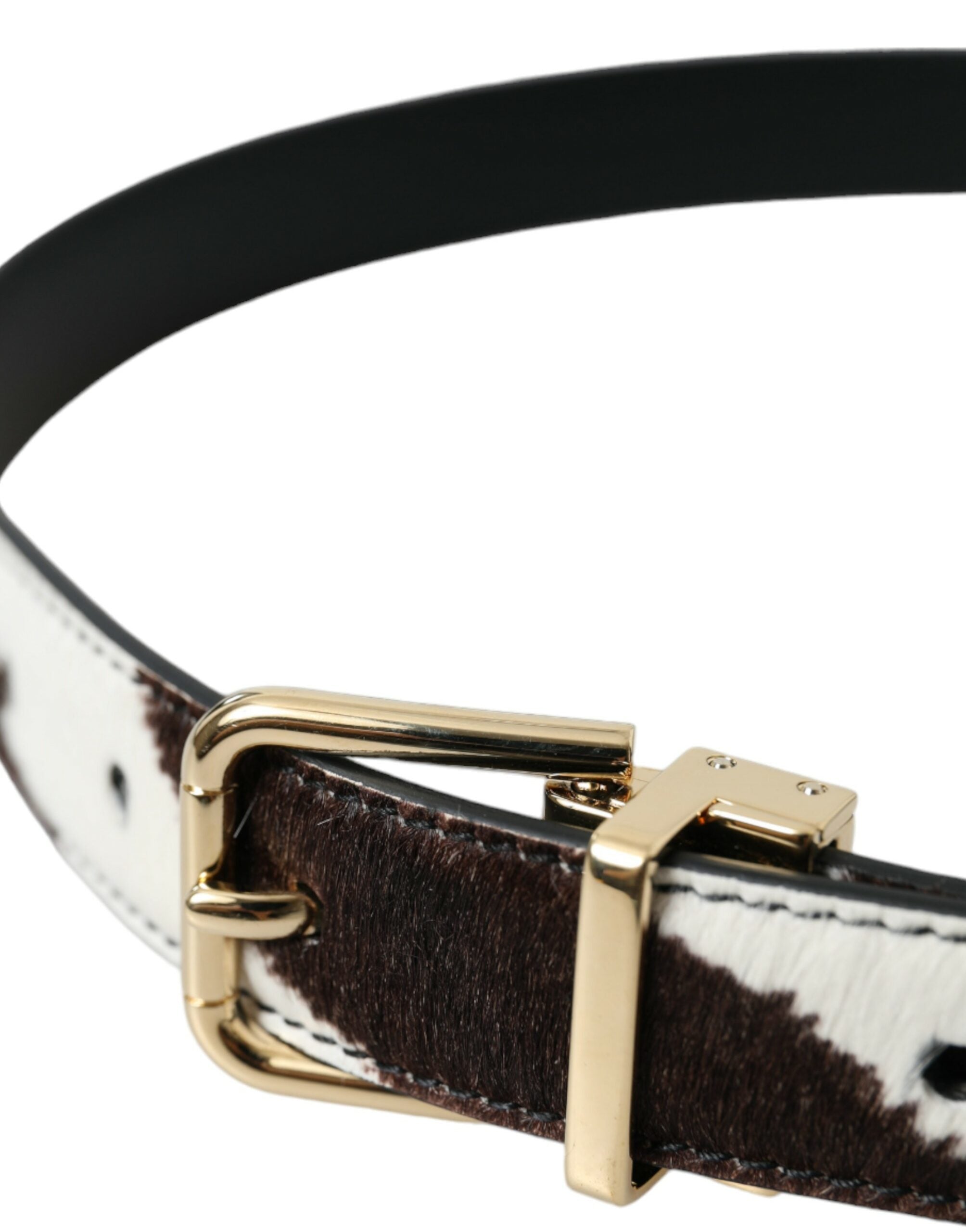 Dolce & Gabbana Brown White Zebra Pony Hair Gold Buckle Belt