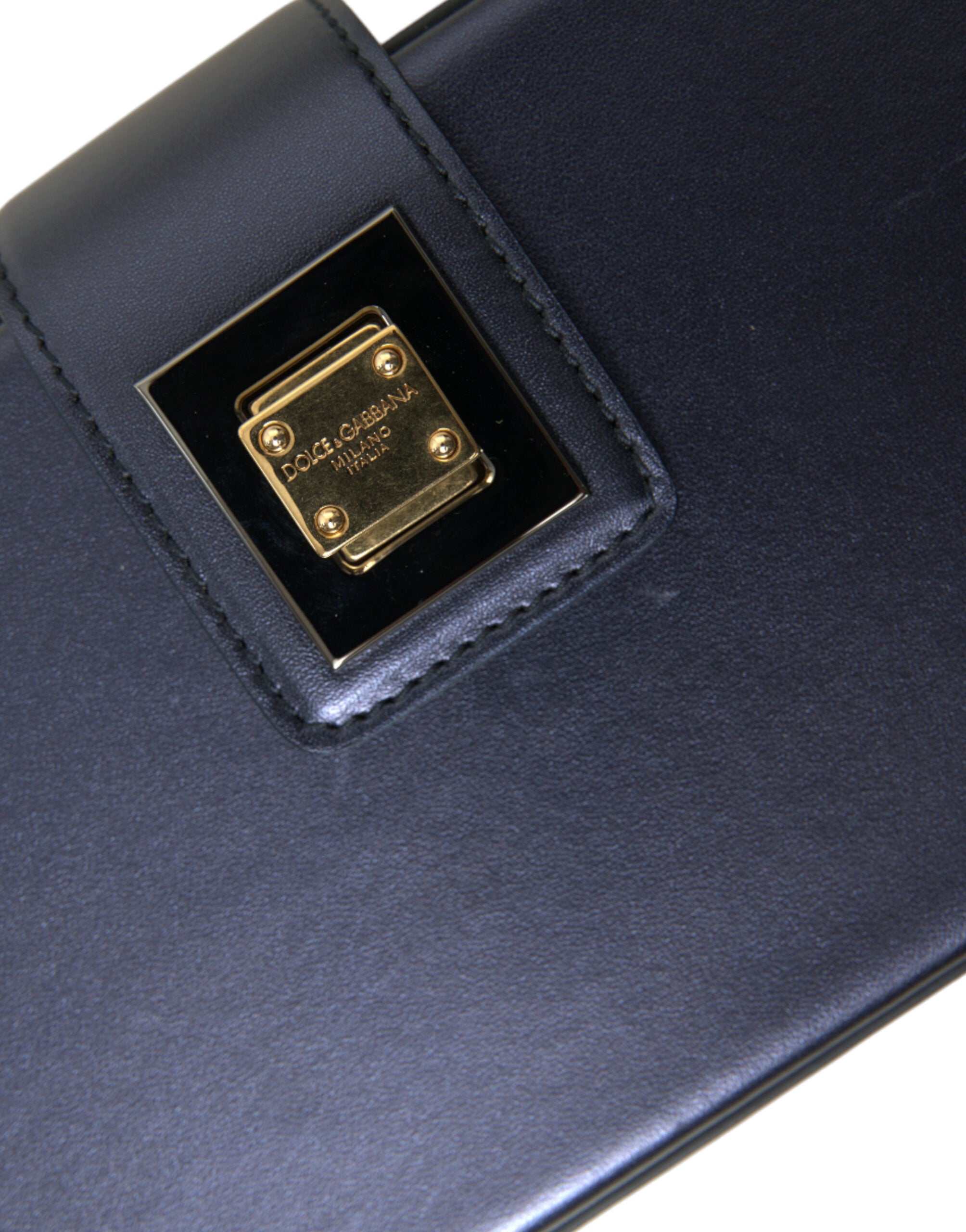 Dolce & Gabbana Elegant Dark Blue Lambskin Leather Box Bag