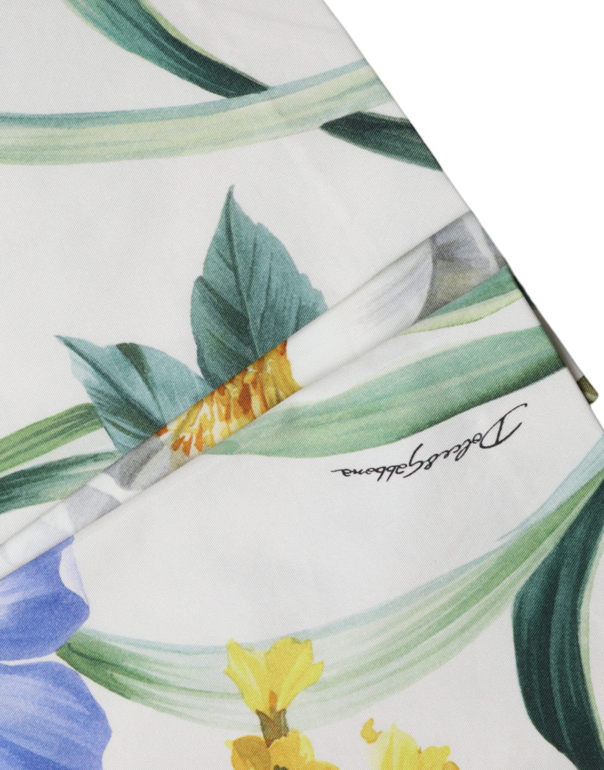Indulge in the essence of spring with this exquisite high waist floral A-line mini skirt from the esteemed house of Dolce & Gabbana. Designed to add a touch of Italian sophistication to any ensemble, this skirt boasts a vibrant floral pattern on a crisp white palette, ensuring you stand out with elegance. Crafted with precision and high-quality materials, it’s perfect for those who appreciate luxury and style. The delicate blend of cotton and elastane ensures both comfort and a flattering fit, making it a must-have wardrobe staple.