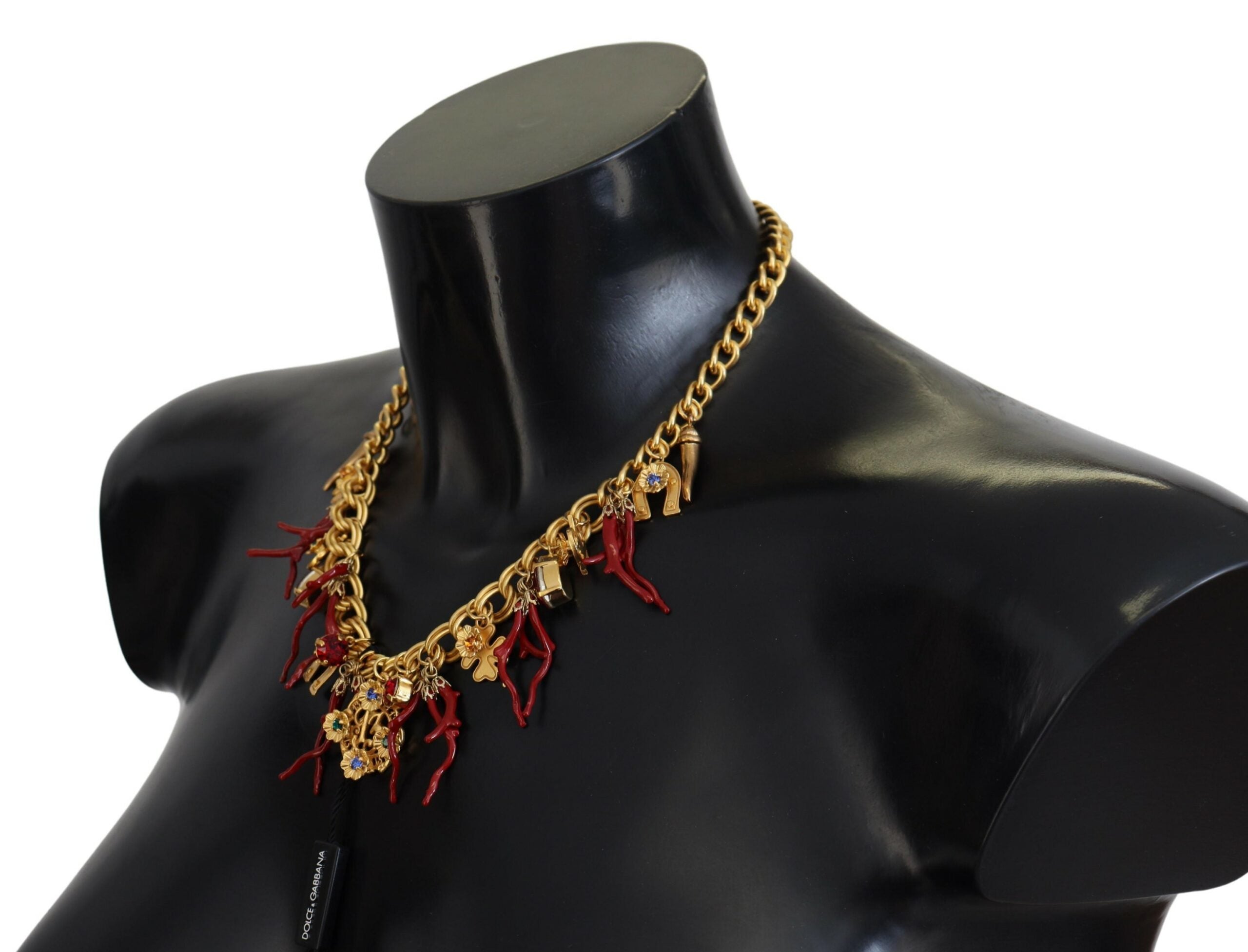 Adorn your neckline with the epitome of luxury – this stunning Dolce & Gabbana necklace, new with tags and guaranteed authentic, is a true statement of fashion. A lavish blend of sparkling multicolor crystals and rich gold hues, it’s designed to capture attention and elevate any outfit. The intricate piece features a lobster closure for secure and adjustable fitting, along with the iconic logo details, adding a touch of elegance and brand prestige. Crafted with love and precision in Italy, this necklace promises to be a centerpiece in your jewelry collection.