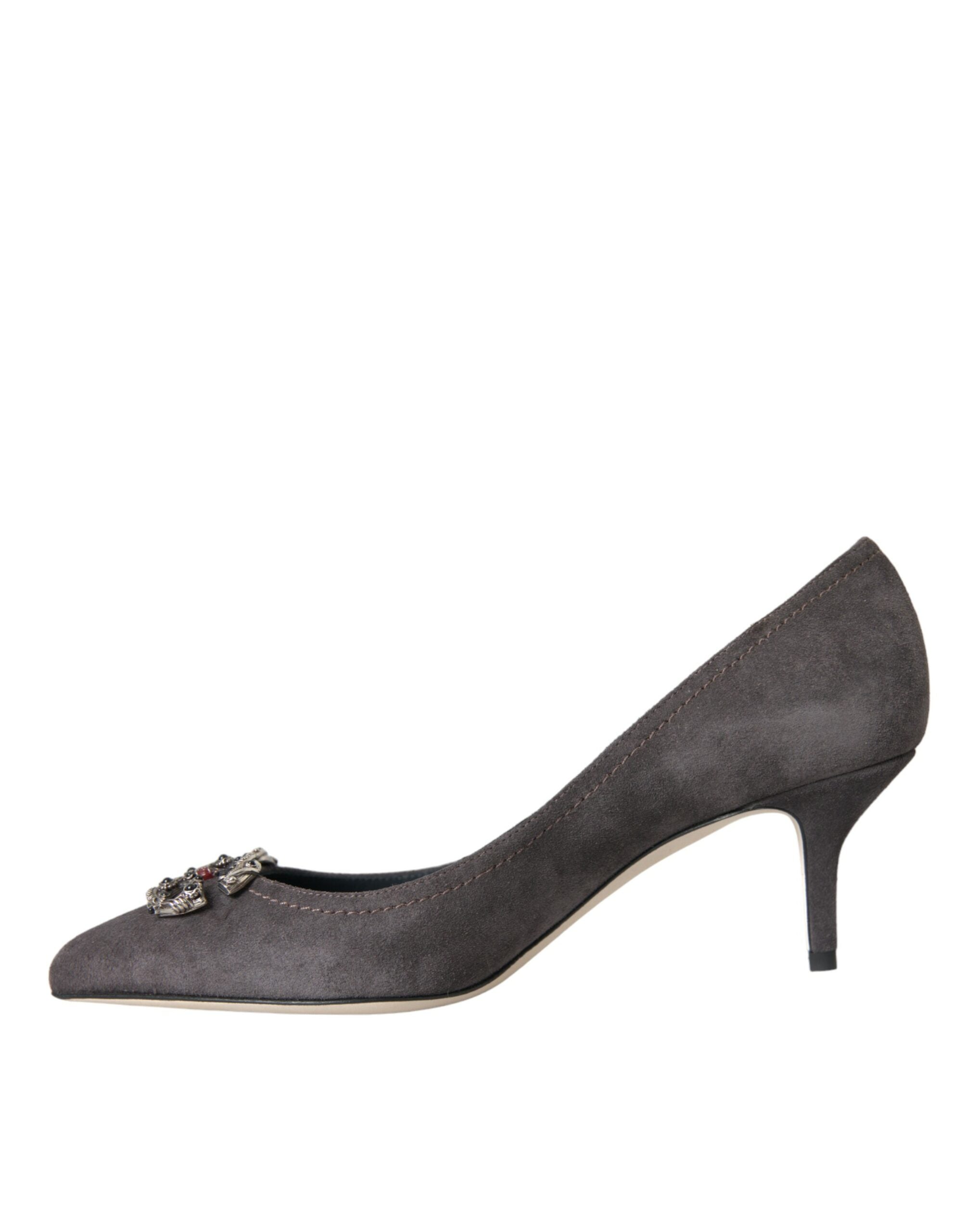 Dolce & Gabbana Gray Amore Suede Bellucci Heels Pumps Shoes