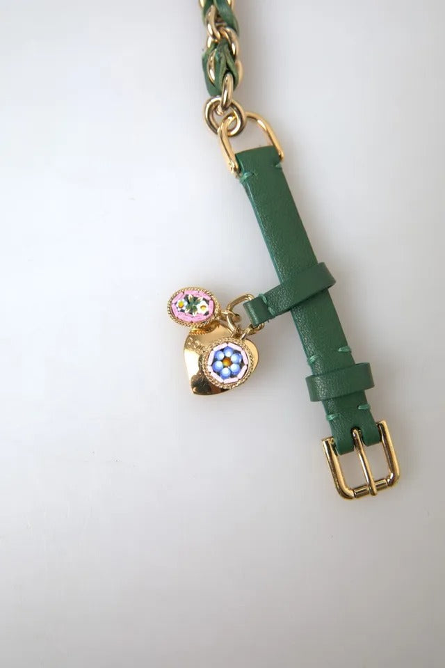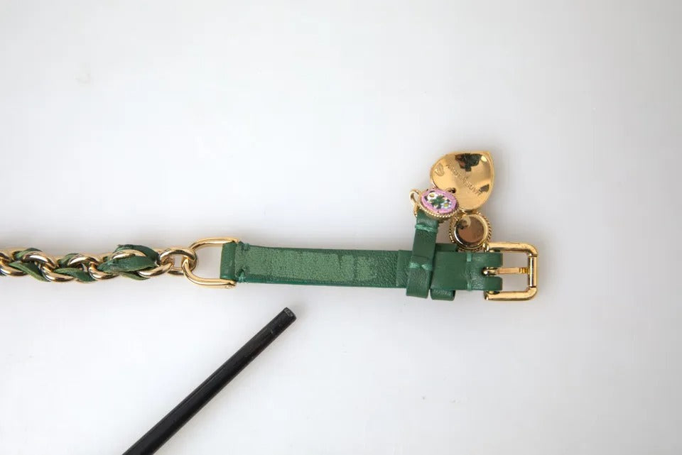 Dolce & Gabbana Green Embellished Chain Gold Buckle Belt