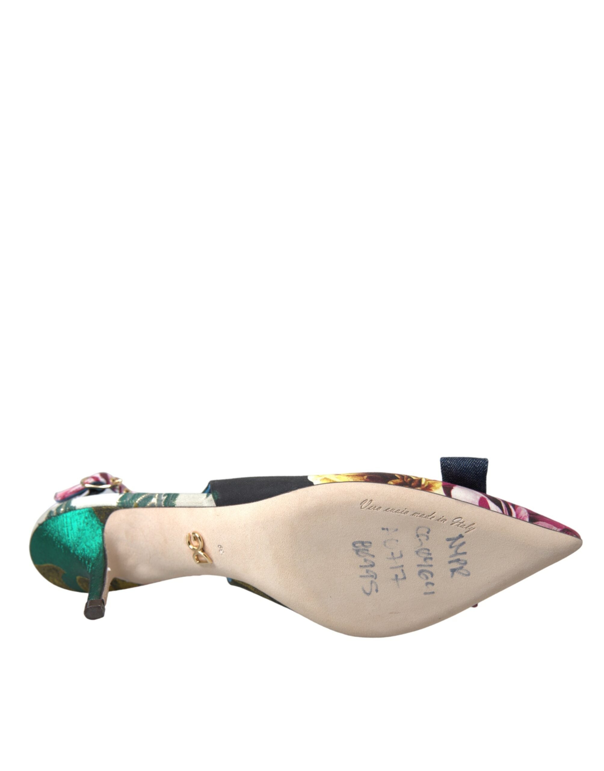 Dolce & Gabbana Multicolor Floral Patchwork Slingbacks Shoes