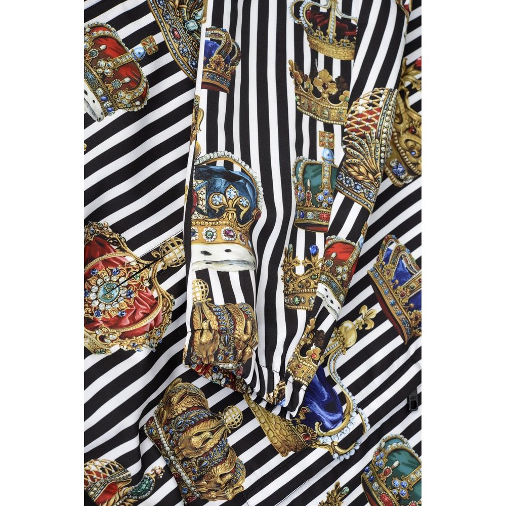 Dolce & Gabbana nylon jacket with striped and crown print, zip closure and two side pockets, mesh lined interior and hood with drawstring.