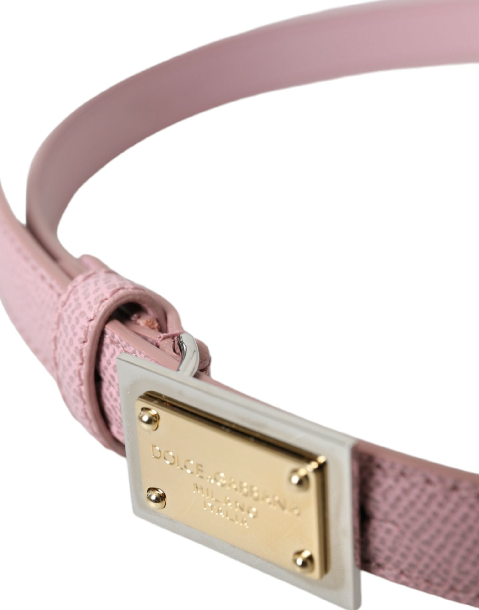 Dolce & Gabbana Pink Leather Gold Square Metal Buckle Belt