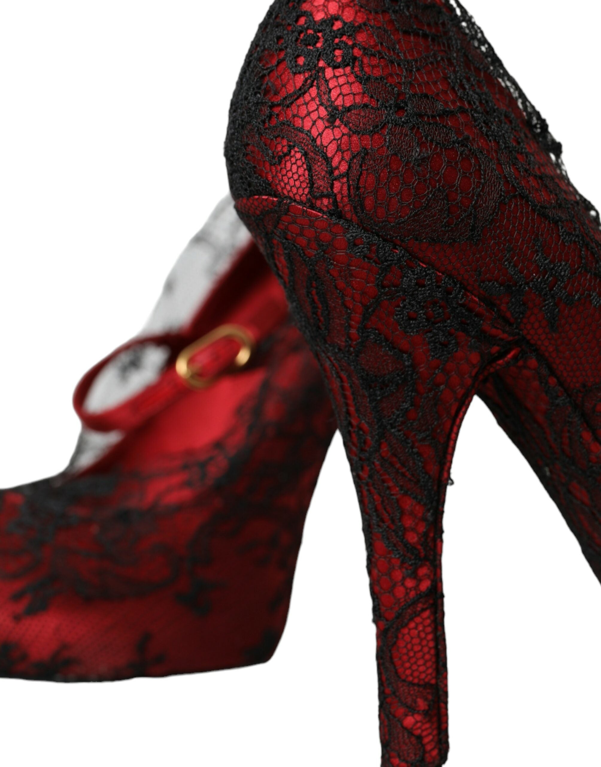 Dolce & Gabbana Red Black Floral Lace Mary Jane Pumps Shoes