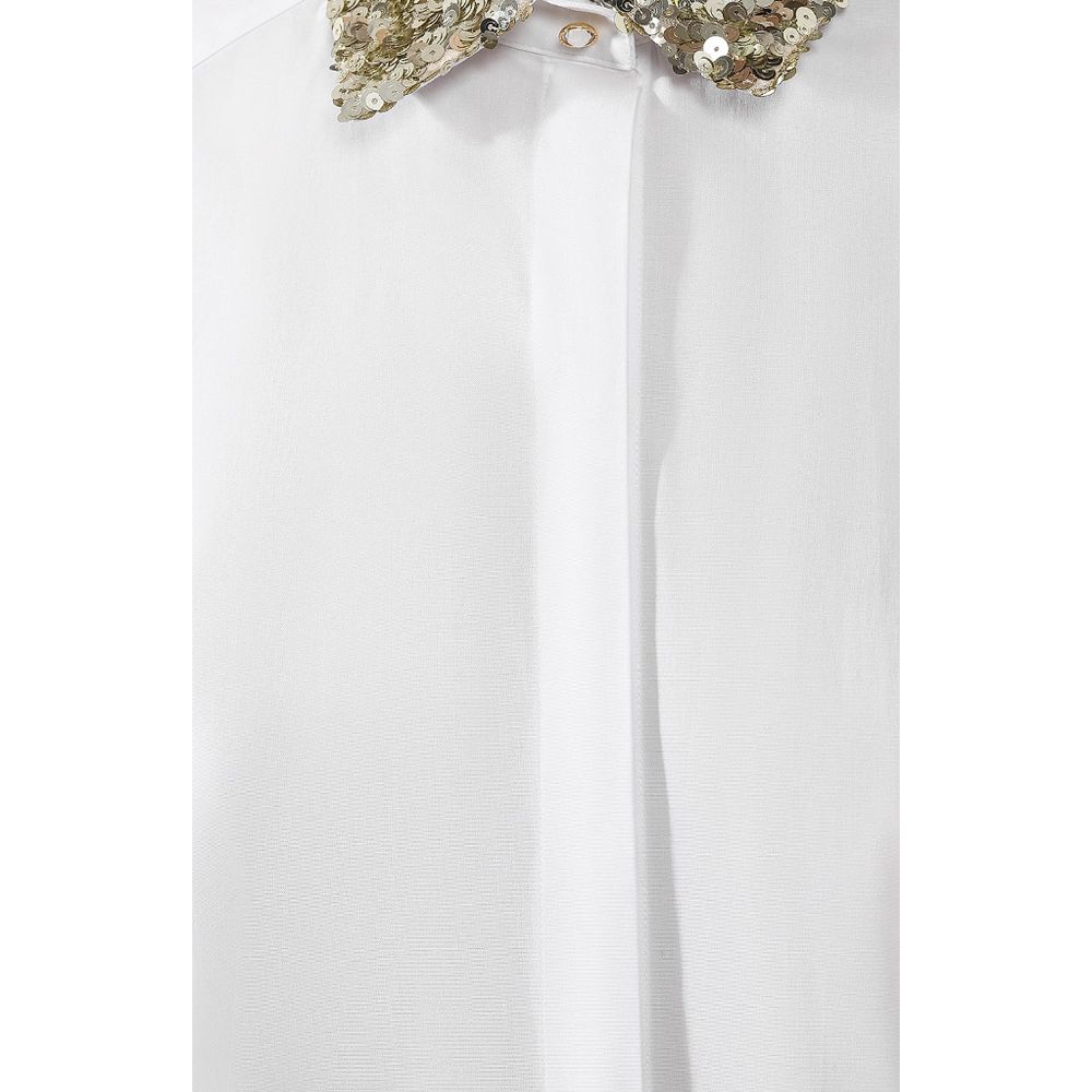 Dolce & Gabbana women’s cotton shirt with collar and cuffs covered in golden sequins, concealed buttons and some jewel buttons