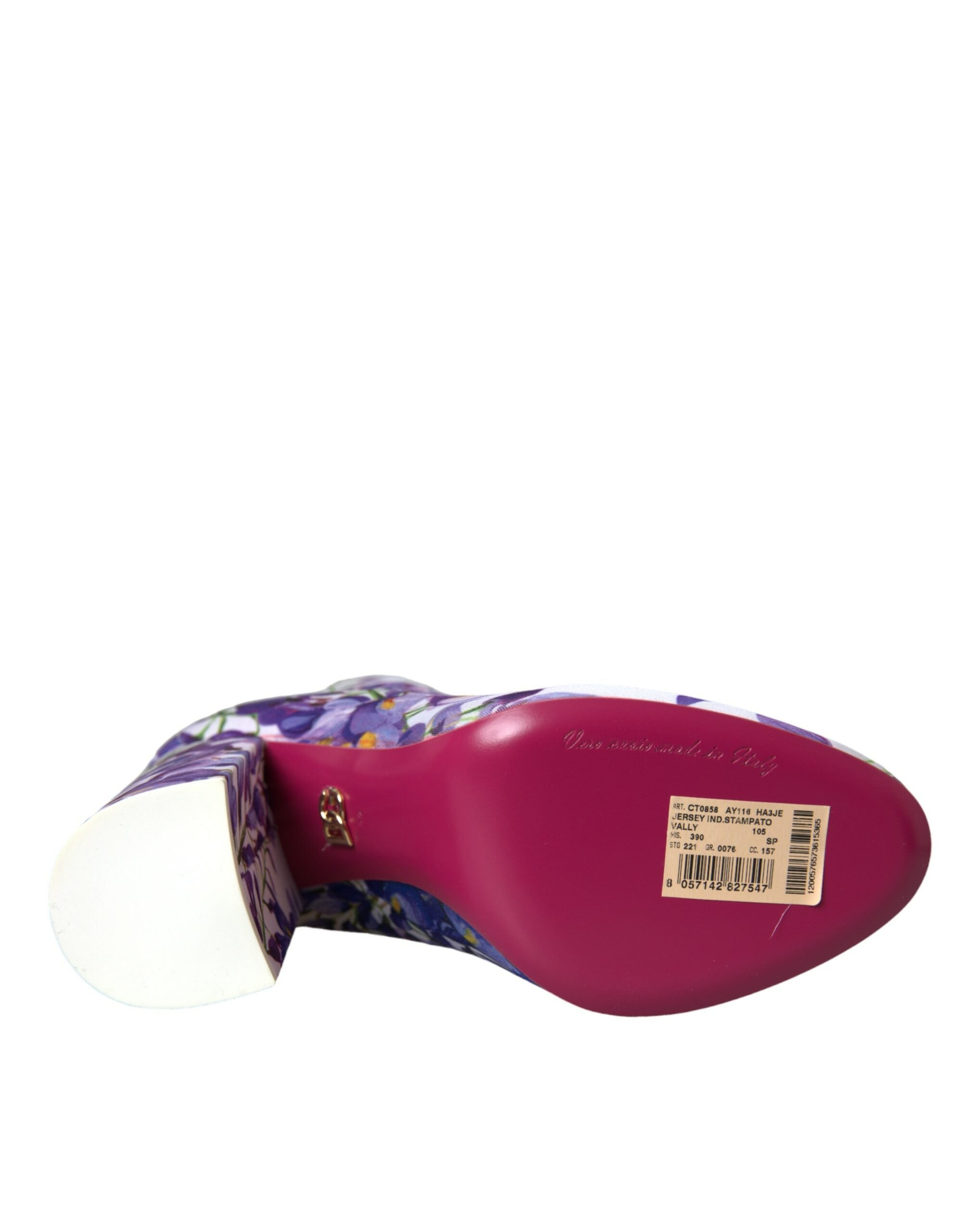 Dolce & Gabbana White Floral Jersey Stretch Boots Shoes
