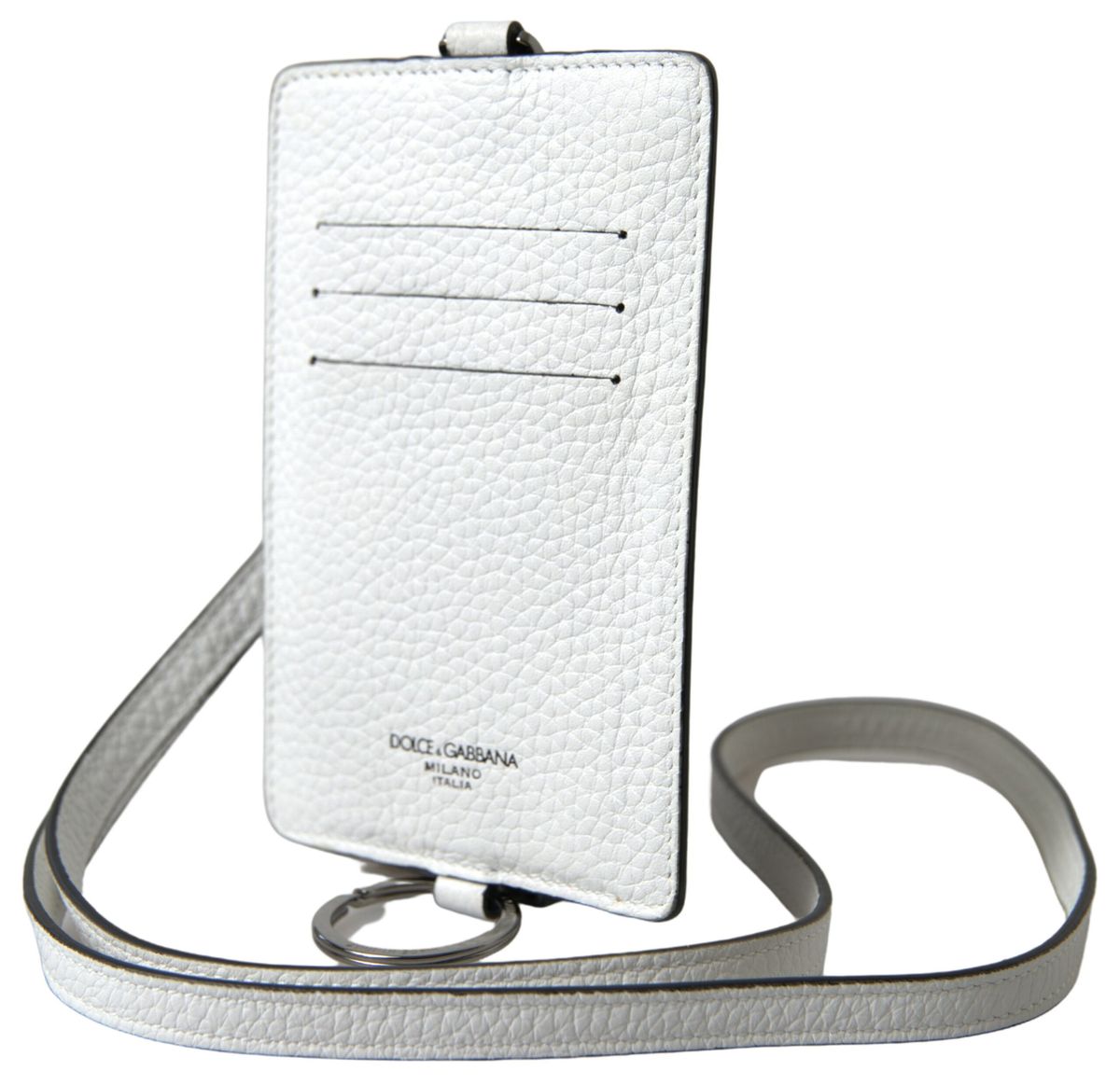 Dolce & Gabbana Elegant White Leather Cardholder Lanyard