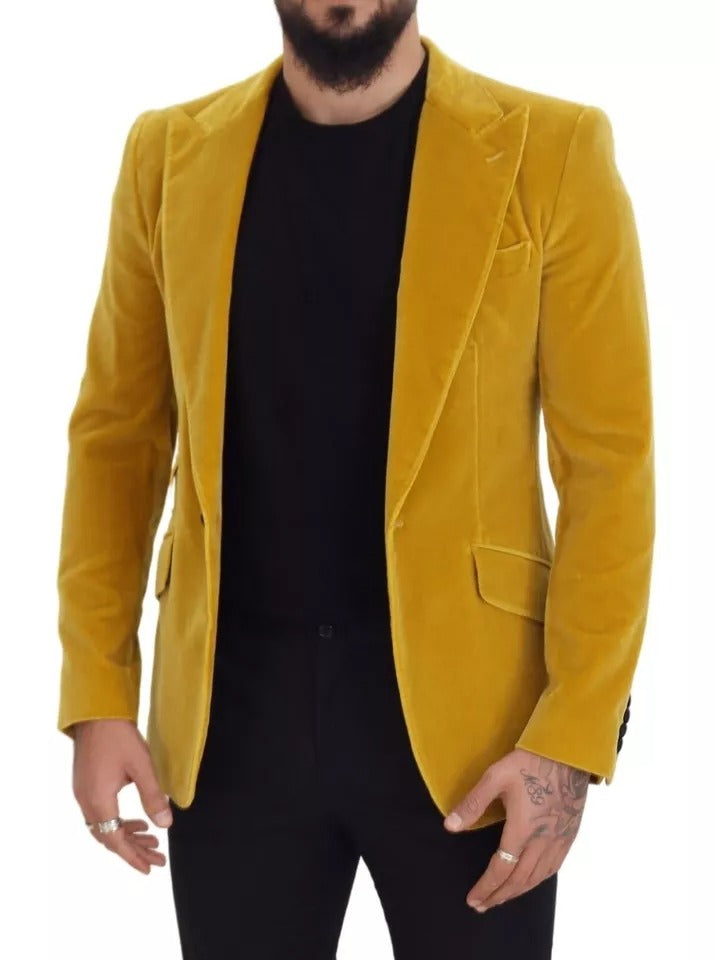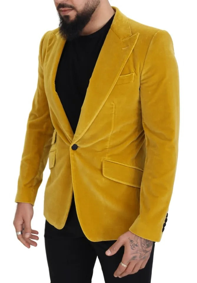 Dolce & Gabbana Yellow Velvet Single Breasted Blazer SICILIA