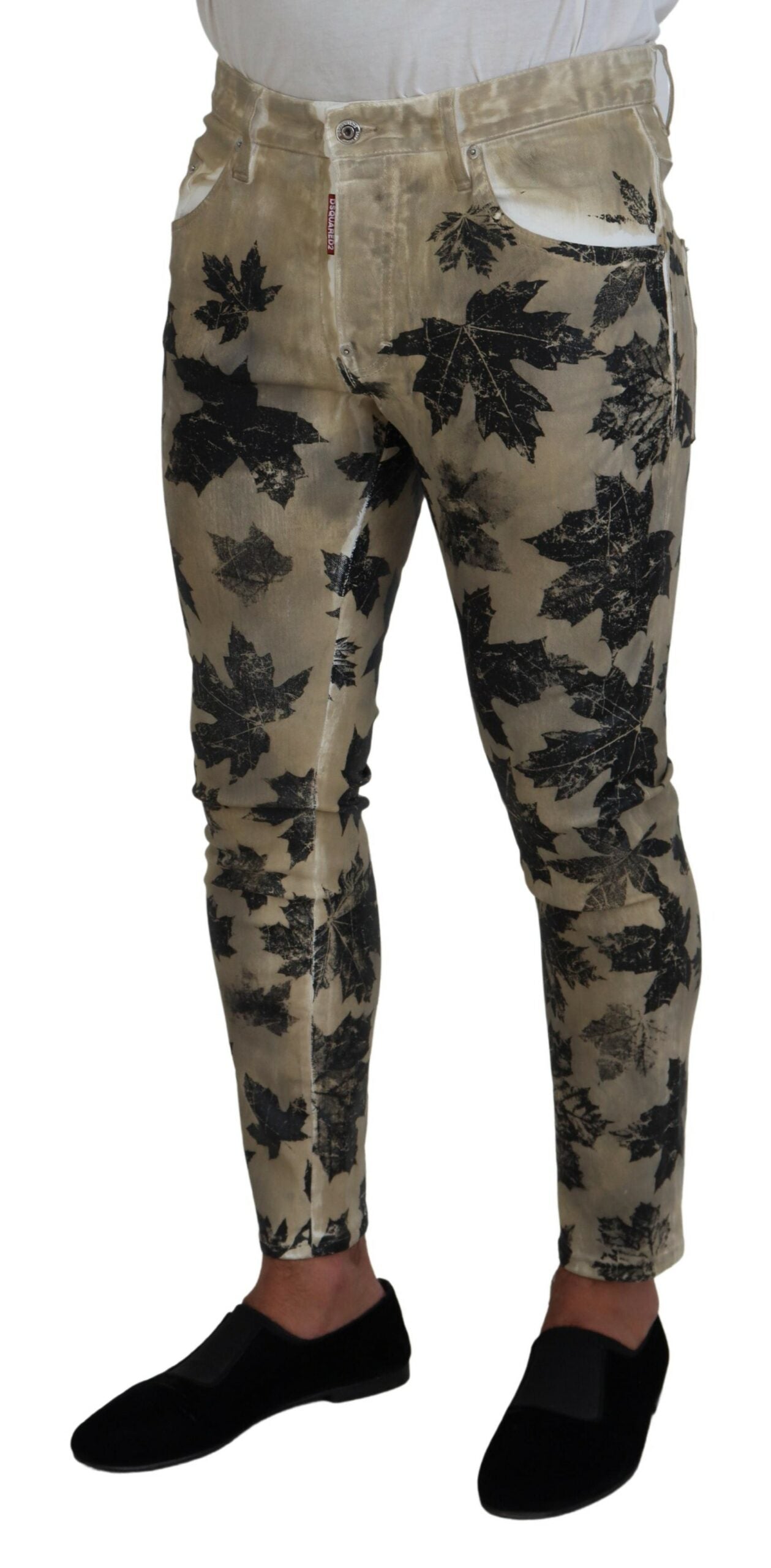 Dsquared² Brown Cotton Printed Skinny Men Casual Denim Jeans