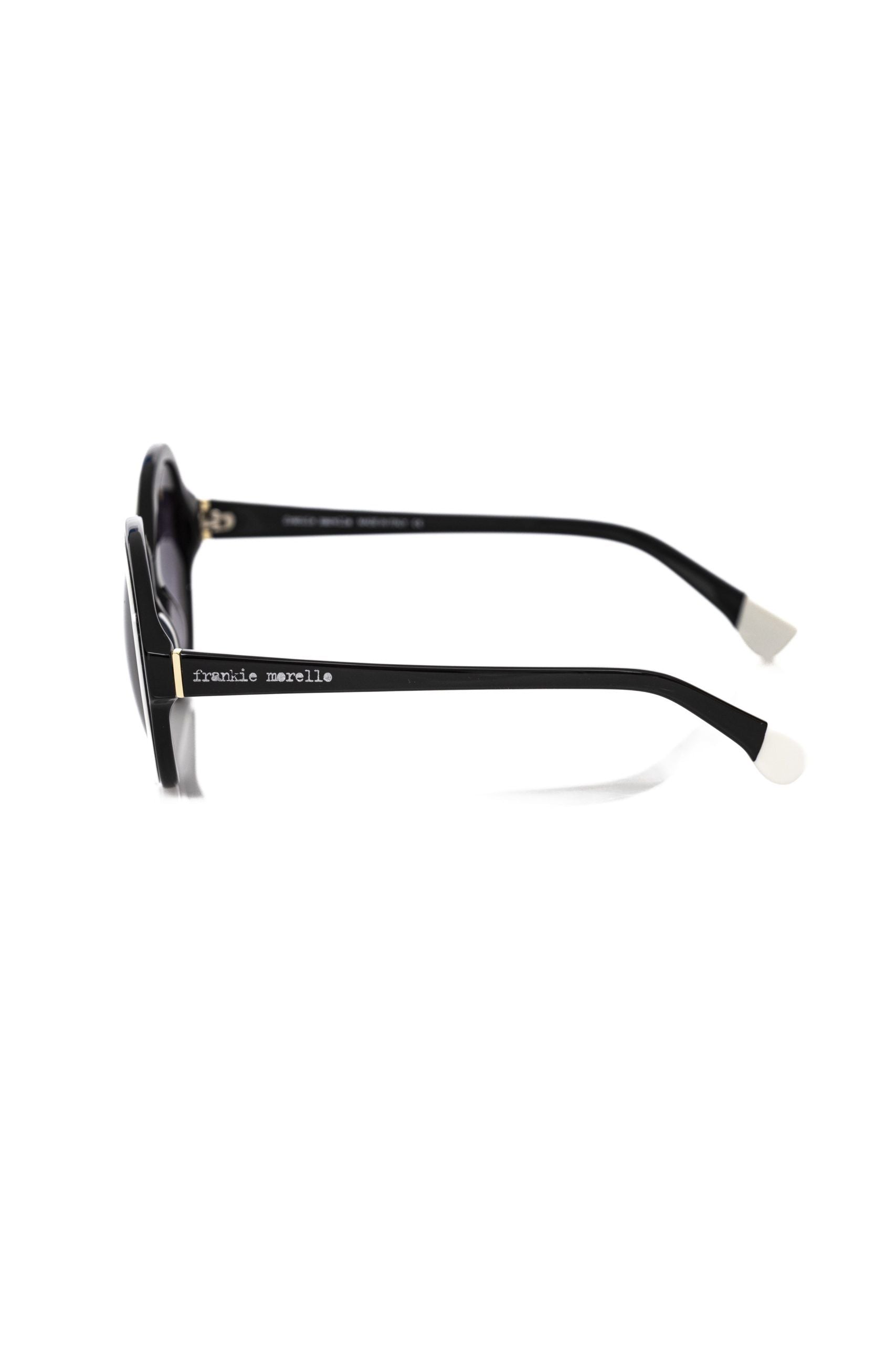 Frankie Morello Elegant Black Round Sunglasses with White Accent